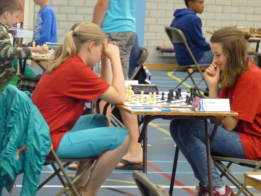 | Zelfs in de ogen van de jeugd zijn schaakstukken te ontwaren |
