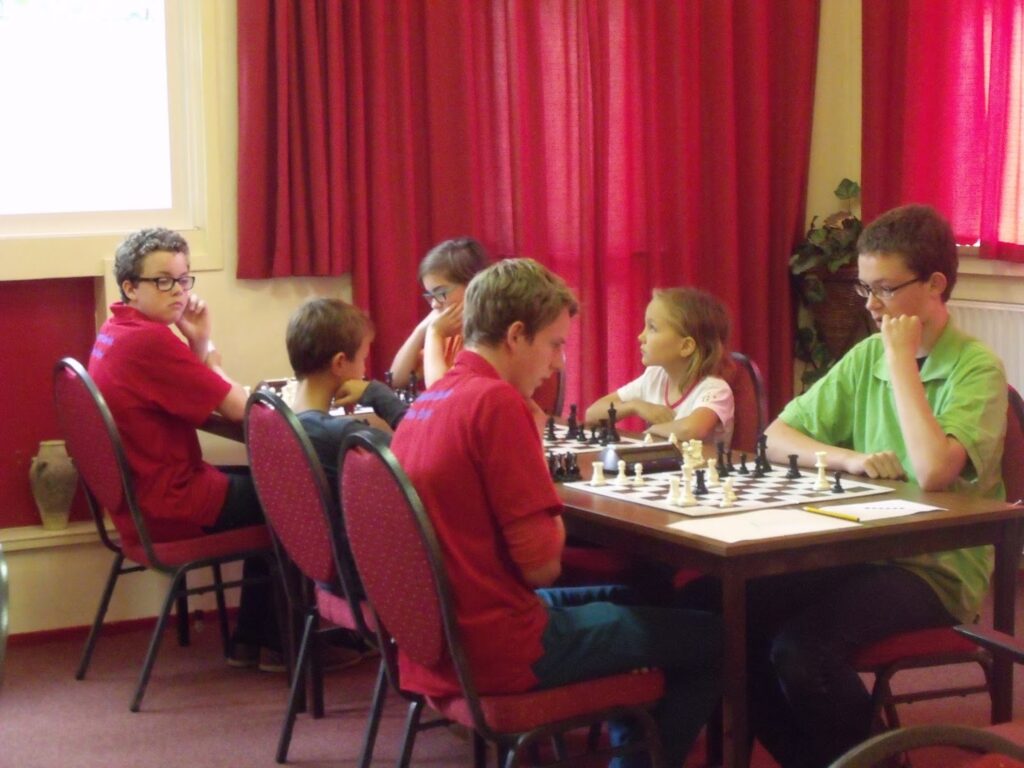 Na drie ronden (lange partij, doorgeefschaak en snelschaak) staat Robin nog net voor Daan. Volgende keer gaan weggeef schaak doen.