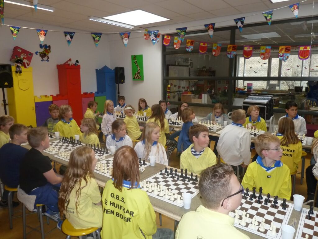 Vanmiddag is het jaarlijkse schoolschaaktoernooi van de gemeenten Bedum en Ten Boer gehouden. Na jaren waren we weer terug in de Walfridusschool. De catering was voortreffelijk. Genoeg te koop voor de kinderen en heerlijke koffie en soep voor de organisatoren. Het toernooi werd dan ook weer prima georganiseerd door Marcel Kuipers en Theo Smit. Het was gemoedelijk, er waren geen incidenten (of het moet de jongen zijn die zichzelf op het plein opsloot toen hij een bal wilde terughalen).