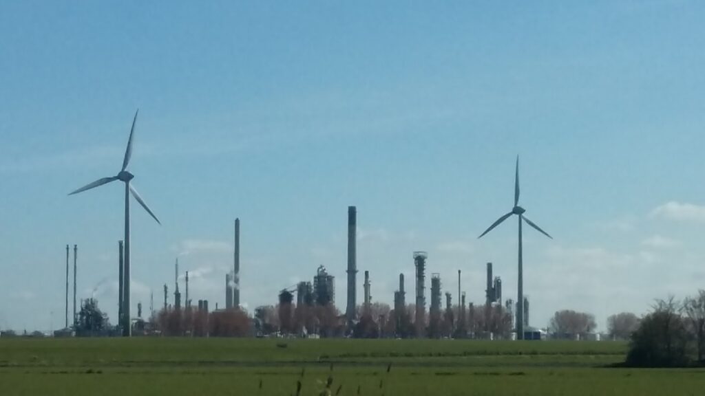langs de containerhaven en kort daarna langs Pernis. In Pernis staat de