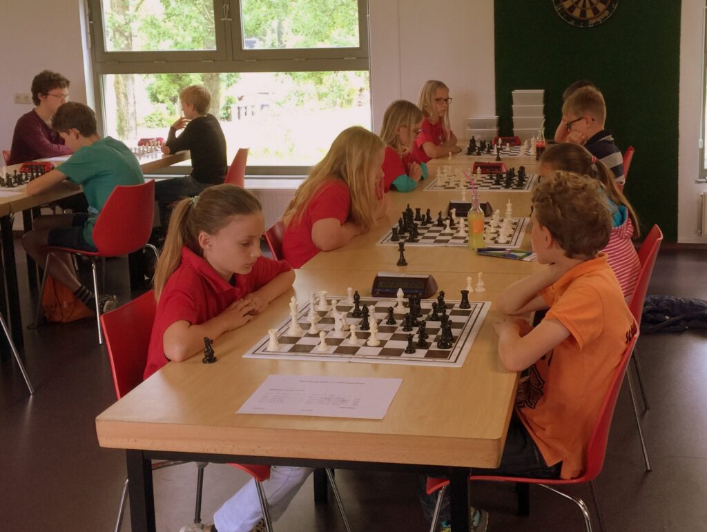 Aan de teamkampioenschappen deden twee combinatieteams en twee eigen teams mee. Het werd een leuke middag, prima georganiseerd. En uiteindelijk wist het meidenteam van ons zich te plaatsen voor het NK. Dit team, aangevuld met Janneke, Stella en Lyne gaat het komend najaar naar Den Bosch toe. Dat wordt erg gezellig. Ook Daan gaat meespelen aan de C-wedstrijden. Hij speelt mee met de nummer 2 van het C-kampioenschap: Staunton. Want de jubilerende club, de Paardensprong, werd hier winnaar.