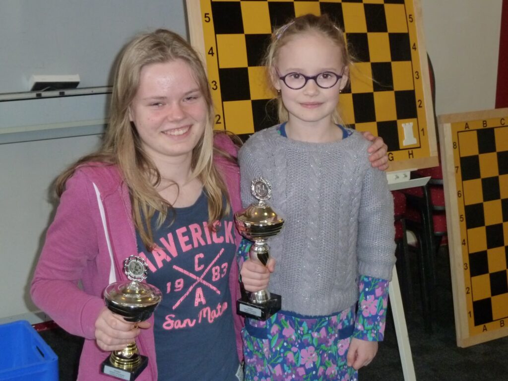 | Gerbrich en Elisa met de door John Havenga beschikbaar gestelde bekers |