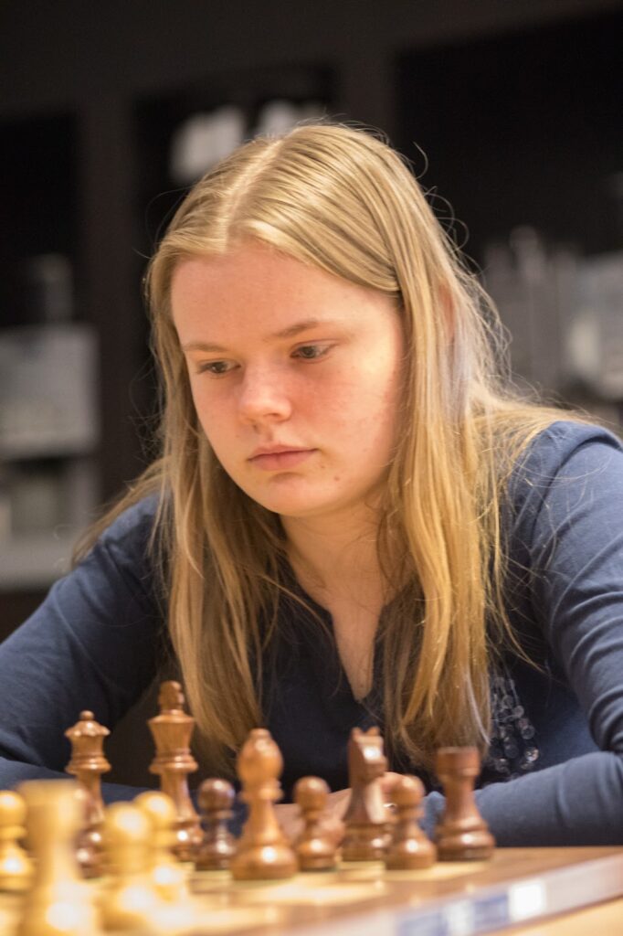 waarbij Yrsa het noodlottige 1. Tfe4 speelde. Gerbrich sloeg meteen met 1… Ld5 toen en won.