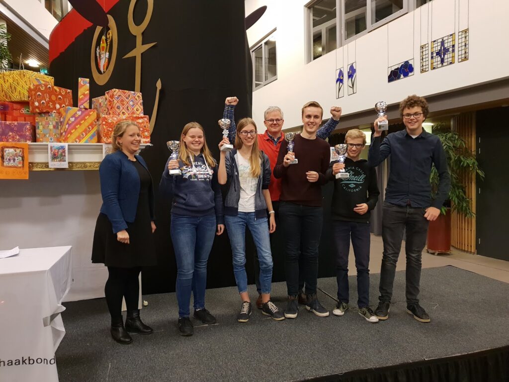 De prijsuitreiking (door oud trainster Iozefina!), het eten in de snackbar en terugreis met het hele team in één auto wordt een geweldig feest. Promotie voor het schaken in Noord Nederland, beginnend met het Jeugd NK 2017 in Assen, het ONJK 2017 en 2018 in Borne en het eerste seizoen met 3 teams in de Promotieklasse. En de volgende generatie jeugdschakers staat al klaar gezien de derde en vijfde plaats van MSV en Assen in de D-categorie. Verder ook de knappe 15de plaats van SC Ten Boer in de C-categorie.