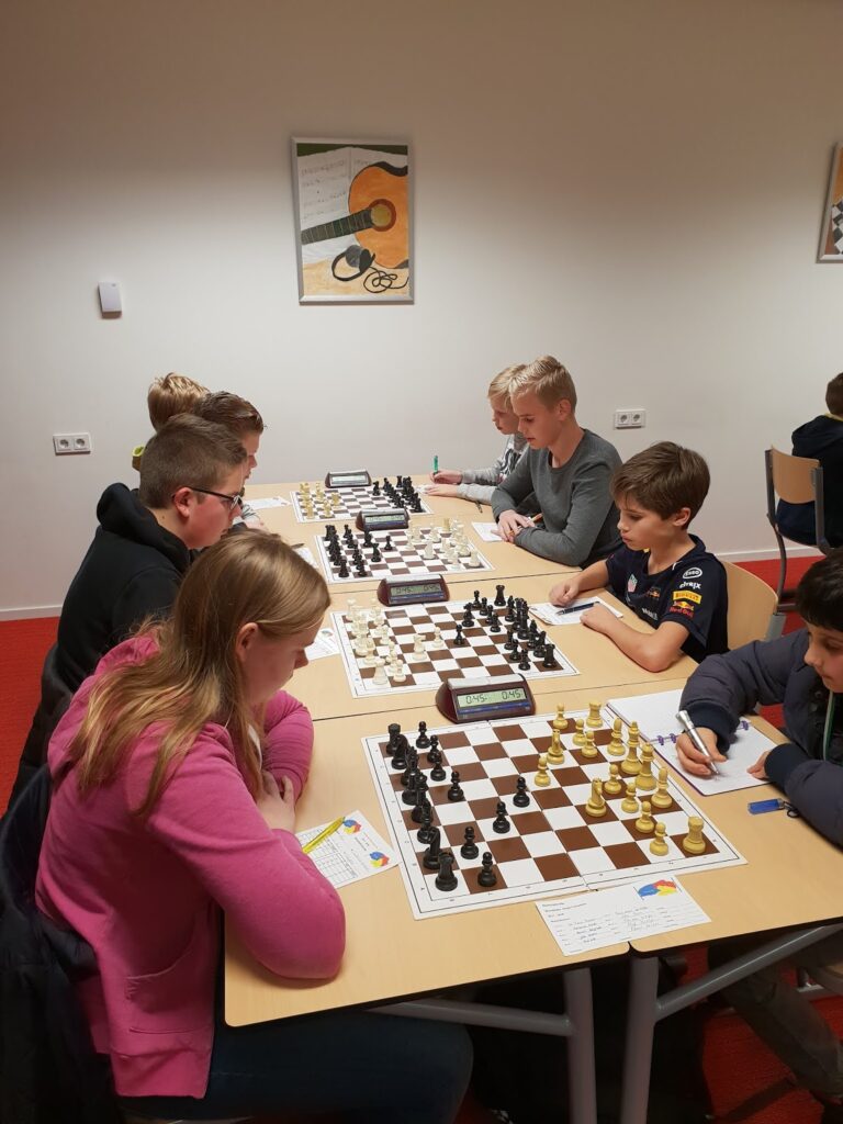 Joël en Rowin hadden ook niet direct winnende stellingen. Maar zij hebben ondertussen een sloot aan ervaring. Dat betaalde zich uit. Joël won een taai toren eindspel.