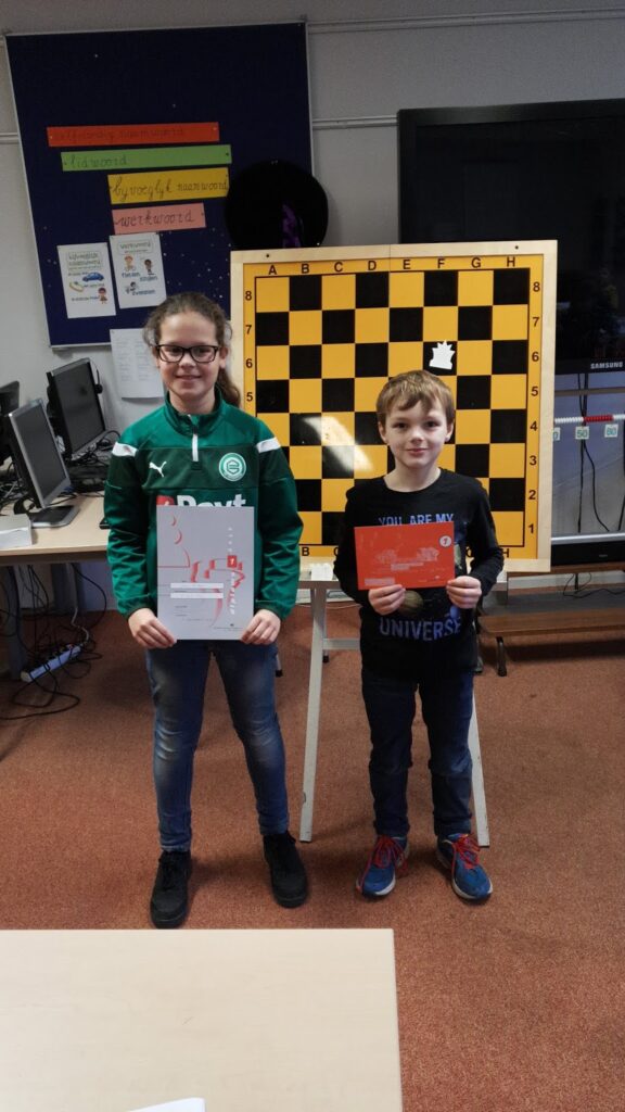 Rafael en Yanou zijn geslaagd voor hun examens van stap 1 resp. opstapje 1. Van harte gefeliciteerd. Yanou gaat nu verder met stap 2 en stap 1+ op school, terwijl Rafael als eerste op onze club gaat proberen opstapje 2 te halen.