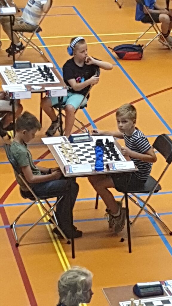 Eerst Lindert. Hij mocht vanmiddag tegen de volgende speler met een rating van meer dan 1300. Hij had zeker niet het slechtste van hets pel maar gaf wat te veel pionnen weg. In een verloren stelling ontsnapt hij met een dolle dame: