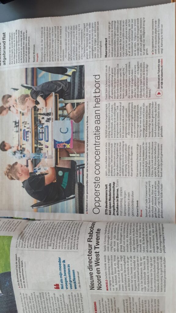 Samuel speelt vandaag zijn laatste ronden. Hij staat in een mooi artikel van de Tubantia: zie link. Ook in de video is hij te zien, net als Joël.