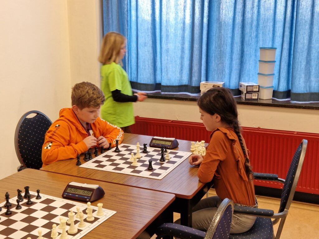 Vanmiddag was het BSK van de stad en de provincie Groningen in het Denksport Centrum. Er deden 15 teams van 12 scholen mee, dus zeg maar iets meer dan 60 jeugdschakers. Bijzonder voor onze club is dat er maar liefst tien clubleden bij vier scholen meededen en dat daarnaast Liva en Evie ook de hele middag aanwezig waren. Liva had gisteravond alle stukken opgesteld. Verder speelden Bram en Thijmen bij GSV1 resp. GSV2. Timo en Imre deden het geweldig bij de Walfridusschool uit Bedumen Isa speelde mee bij ’t Kompas uit Lewenborg. De meeste clubleden speelden mee bij de Fontein uit Ten Boer: Paulien, Noa, Joris, Sarah en Hannah.