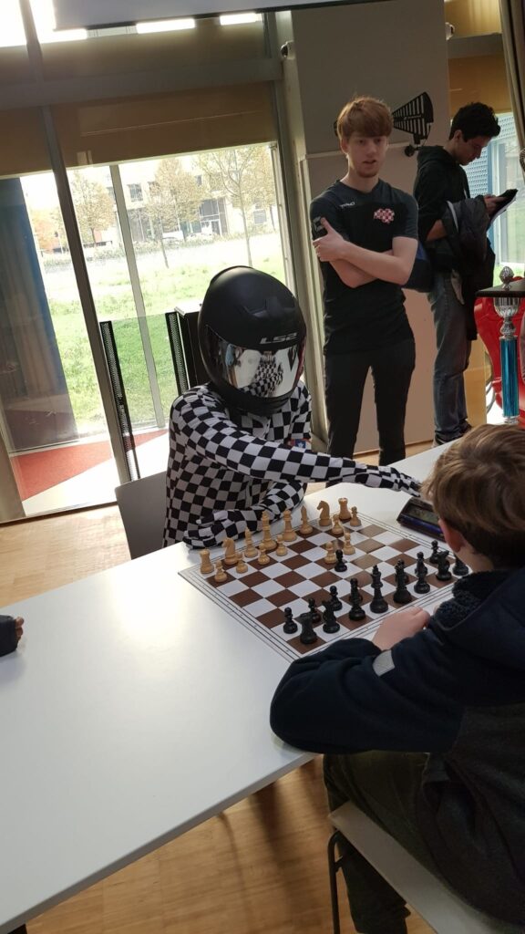 Maurijn werd op 28 oktober uitgenodigd om mee te doen in het Hutton-toernooi in Utrecht. Het Hutton toernooi is een teamwedstrijd tussen de onderbonden van de KNSB. Elke onderbond mag per leeftijdscategorie een team afvaardigen van vier sterke jeugdspelers dat het opneemt tegen de teams van de andere bonden. Maurijn was uitgenodigd voor het C-team. De C-categorie is eigenlijk de pechgeneratie van de Corona. Veel spelers hebben de leukste NK’s (de D- en E-NK’s) aan zich voorbij zien gaan omdat ze door de lock downs niet georganiseerd konden worden. Maurijn was in 2021 dicht bij plaatsing voor het NK D in Rijswijk. Hij viel net buiten de NK-plekken door een ongelukkige nederlaag in het online PJK dat via Lichess werd gespeeld. Anders zou hij de eerste jongen van onze club zijn geweest die hier aan had mee mogen doen. Na die tijd is hij goed doorgegaan met schaken op de club en zijn rating is als gevolg van sterke toernooien (met name het Paardensprong toernooi) erg gestegen. Daarom viel hem de eer te beurt om de Nosbo te vertegenwoordigen.