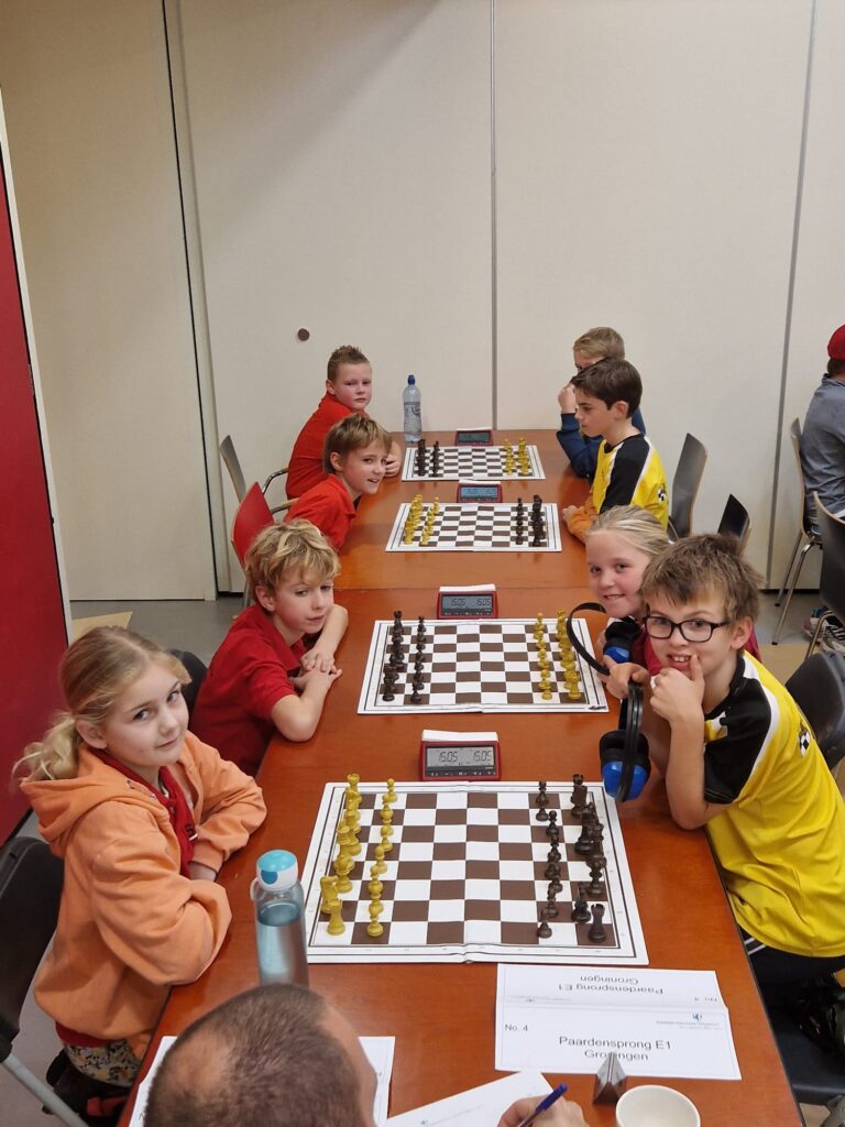 Op zaterdag 11 november, juist je Sint Maarten, heeft ons E-team een erg knappe prestatie behaald in Muiderberg. Op het NK voor E-teams wist ons team lang mee te draaien in de top en eindigde uiteindelijk in de subtop. Gedeeld vijfde en op bordpunten negende. Zo’n goede prestatie hebben we als club nog nooit eerder behaald in de E-categorie. Het team is nog jong en kan volgend jaar nog een keer meedoen.