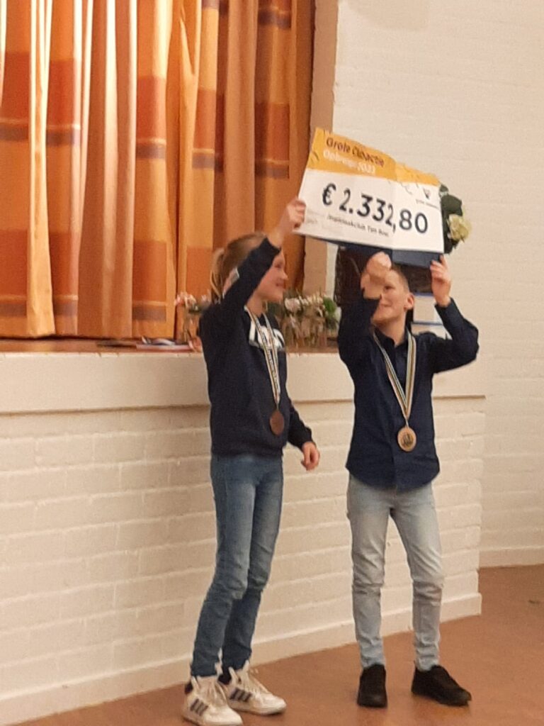 Afgelopen jaar hebben jullie, de jeugdschakers van de club, meegedaan aan de Grote Clubactie. Al in de zomer kwam Paula met het idee om daar met de club aan mee te doen. Samen met Anneloes heeft ze vervolgens de actie op poten gezet. Eind september kregen jullie de lotenboekjes met loten om te verkopen aan bekenden. Voor elk lot van 3 euro ging 2 euro 40 naar de schaakclub. In de begroting hoopten we zo ons jaarlijks sponsorgeld bij elkaar te krijgen.