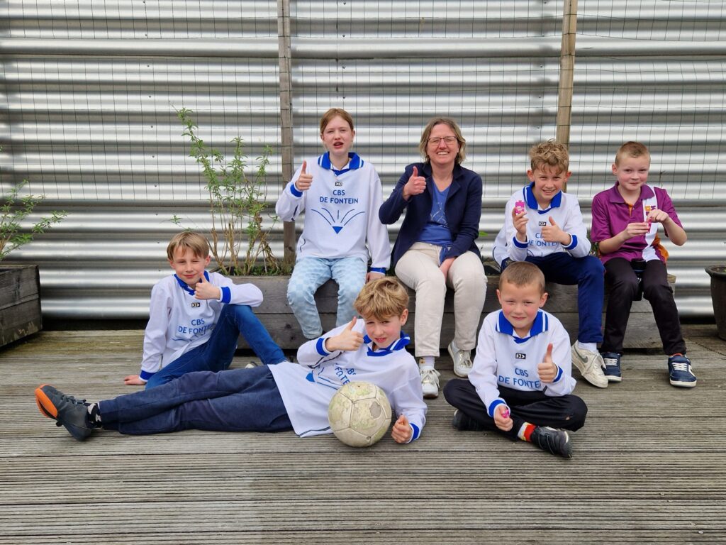 Het team van de Fontein met Bram en juf Henrianne die langs kwam