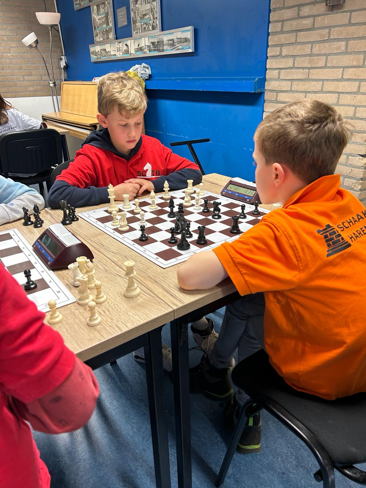 Thijs en Bram speelden de hele middag in groep I prachtige partijen. Wat zijn jullie de laatste tijd vooruit gegaan! Thijs heeft veel gevoel voor de harmonie van de stukken. Als hij de kans krijgt om zijn stukken goed te laten samenwerken dan weet hij een enorme aanval te ontwikkelen. Stap 2 begrijpt hij goed.