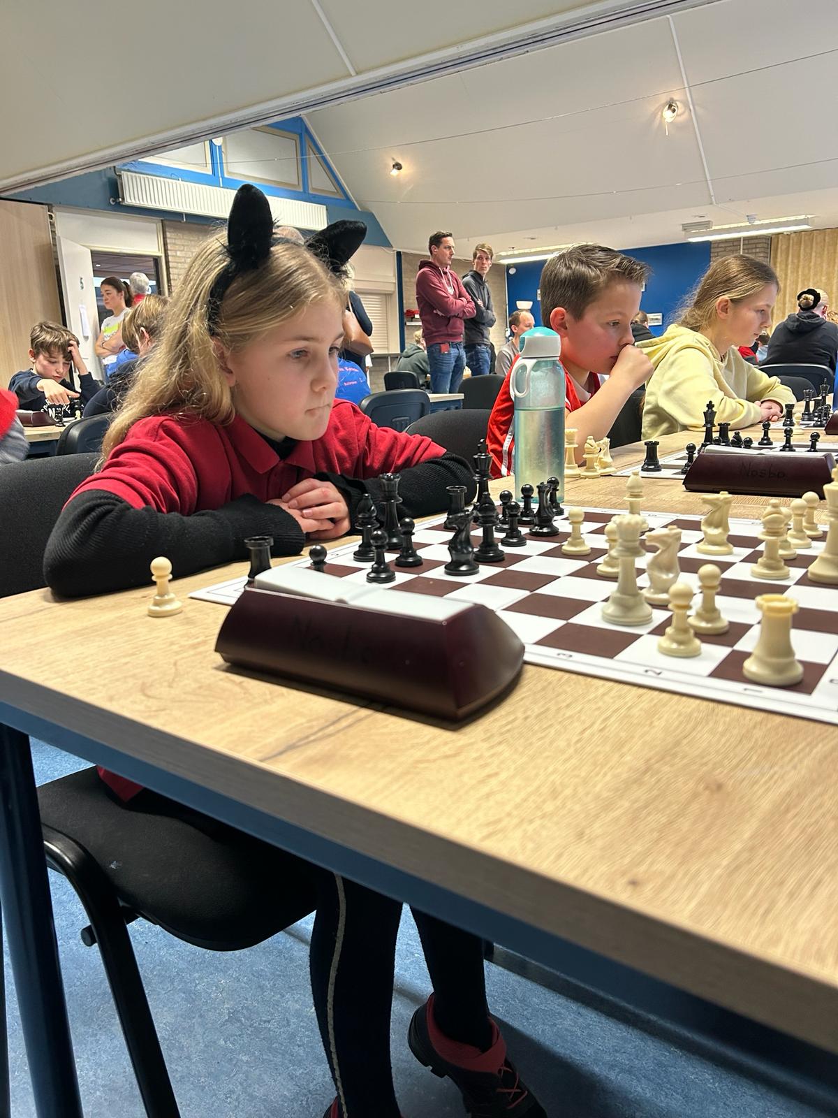 Noa stond met 5,5 uit 8 nét niet op het podium. Ze werd zesde in haar categorie. Ze begon prachtig met 2,5 uit 3 terwijl de remise eigenlijk ook bijna een winst was. In de vierde ronde op bord 6 verloor ze en ook de ronde daarna ging niet goed. Maar Noa ontwikkelt zich héél snel en ze eindigde met 3 uit 3. Bijzonder knap is haar overwinning op de sterke Jesse Kooke.