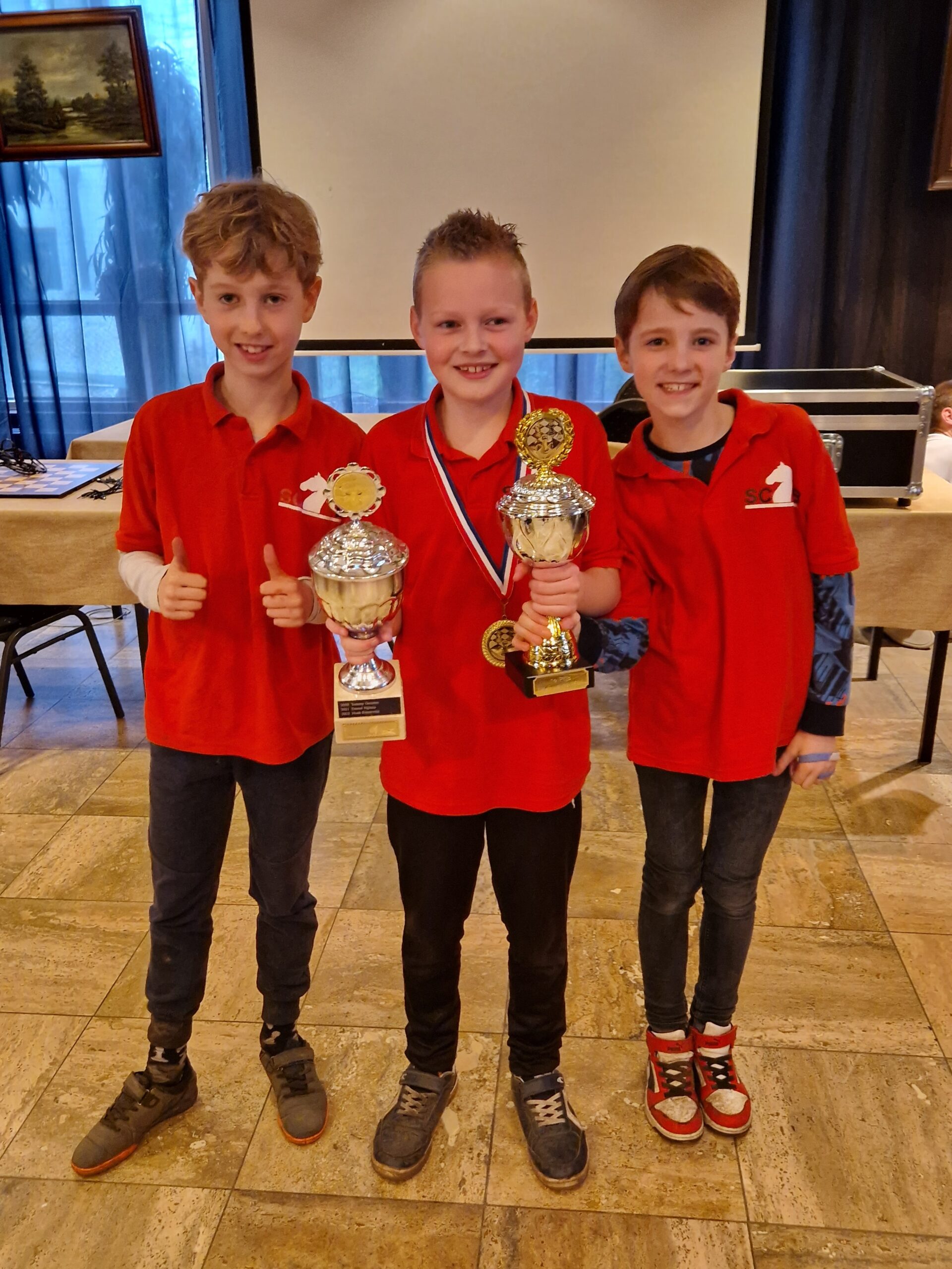 Overigens: ook Thijs scoorde goed met 4,5 uit 7. Voor hem slechts de vijfde plaats, heel bijzonder met zo’n goede score.