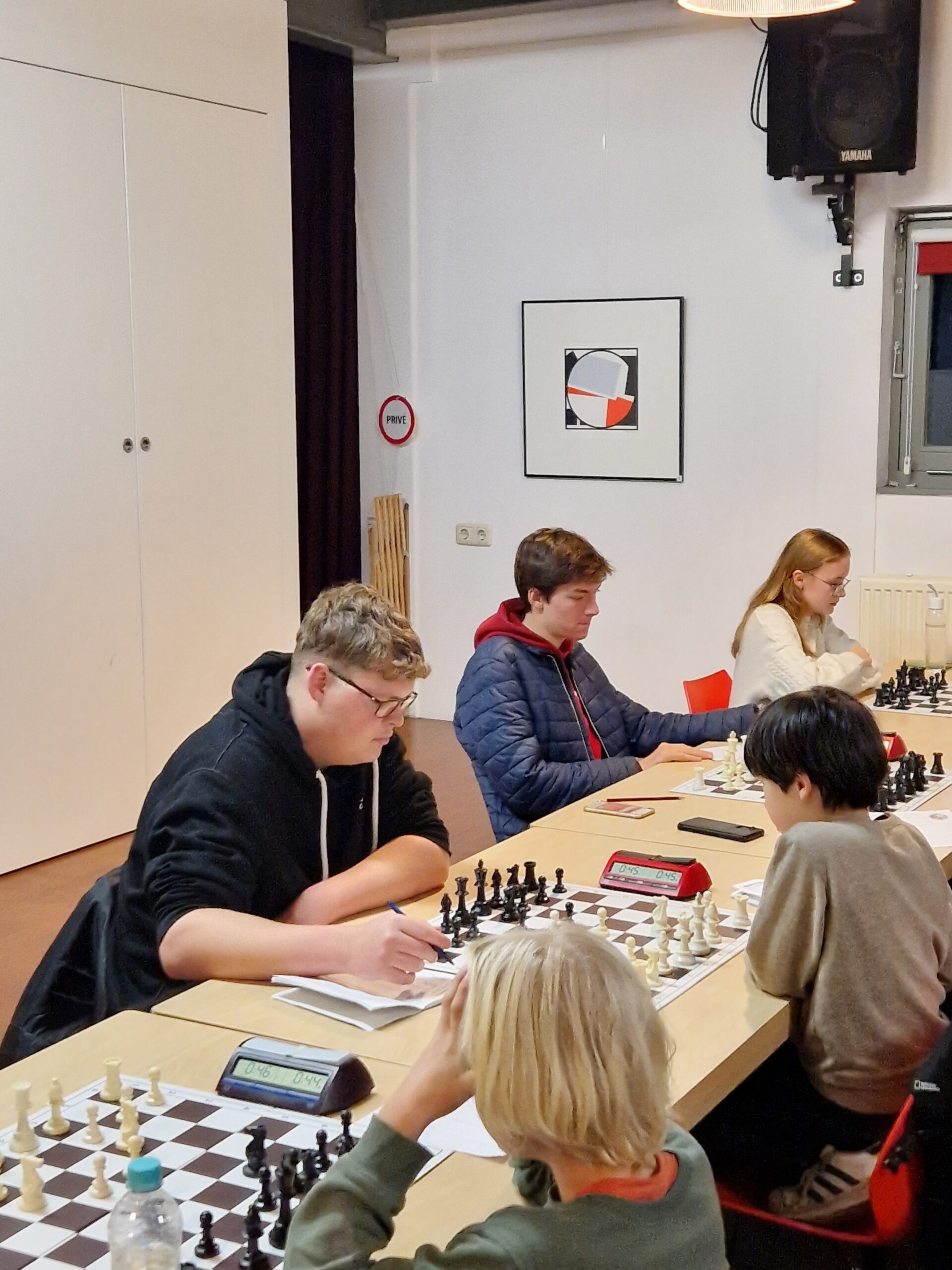 Verder vond in de Hunzeborgh de tweede ronde van de Noordelijke Jeugd Competitie plaats. Door het ontbreken van Bram had het eerste team een behoorlijke klus tegen Philidor Leeuwarden.