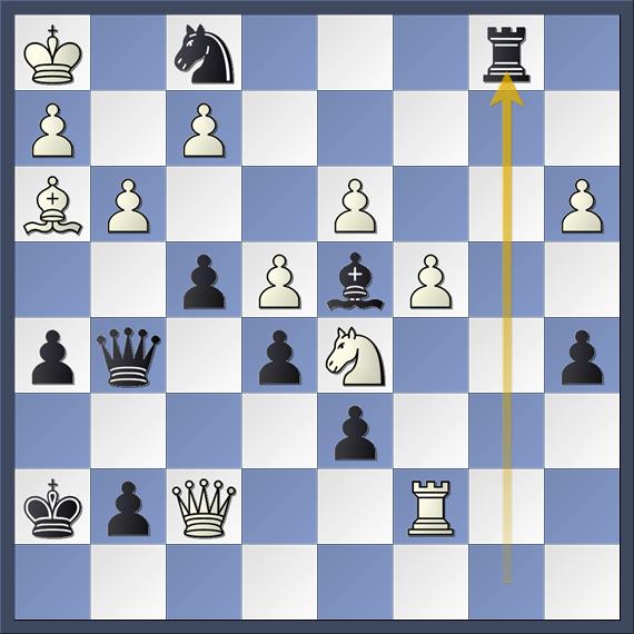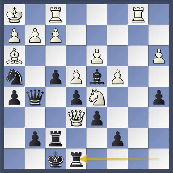 22… Kf8 met het idee van 23… Te8 blijkt een misrekening te zijn. Wit speelt 23. Kh1 en na 23… Te8