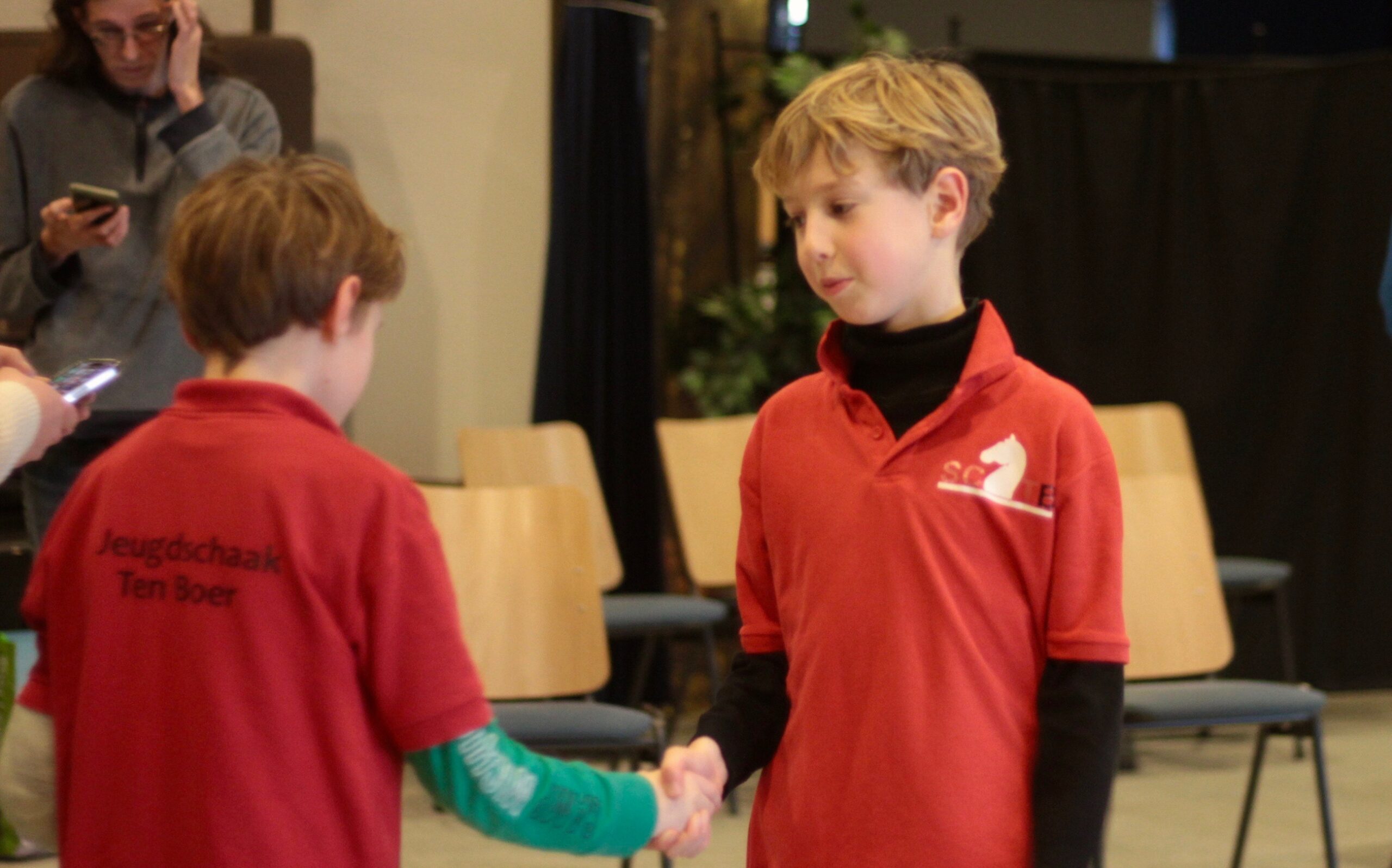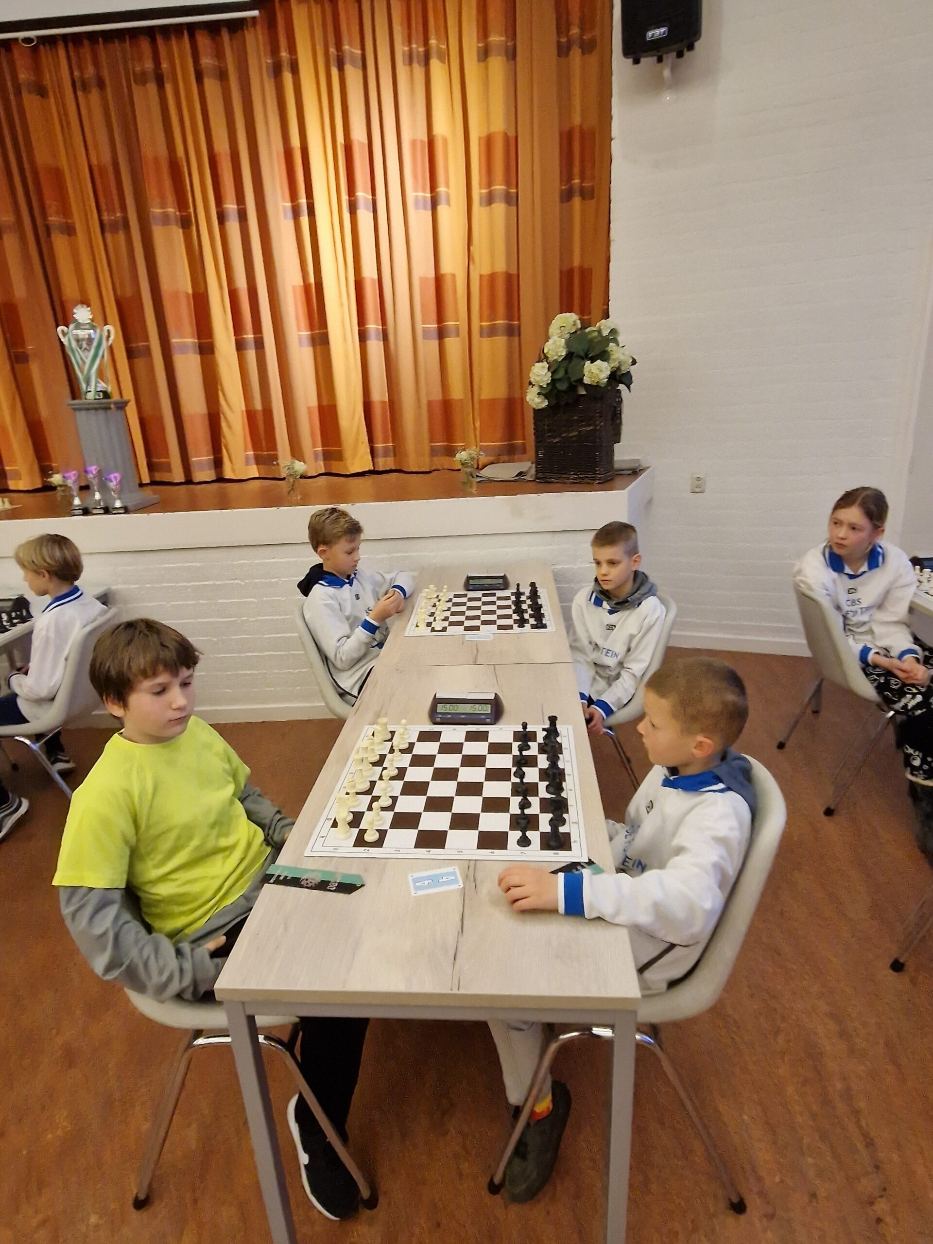 Er deden dus 53 kinderen mee, meerdere scholen uit de omgeving vertegenwoordigend. Verheugend was de deelname van de Poort uit Ten Boer die weer met een mooie delegatie kwam. De Horizon en de Walfridus kwamen uit Bedum. Verder was er één schaker van de Togtemaarschool uit dezelfde plaats. Uit Zuidwolde had ’t Groenland een aantal jeugdschakers naar Menorah laten komen. Voor het eerst ook deelname uit Middelstum. Daar is men bezig met een fusie en we hebben nu de scholen nog apart genomen in de eindstand, maar kijken nog even naar de gevolgen voor de scholenstand als we de scholen samen nemen. De Wilster en de Wicher Zitsema gaan volgend jaar namelijk technisch fuseren maar wellicht dat men formeel al gefuseerd is en dat we de jeugd ook direct al samen mogen nemen. De meeste jeugdschakers kwamen van de Fontein uit Ten Boer, 13 maar liefst. En tenslotte kwam de sterkste schaker van OBS Garmerwolde gelukkig wel naar Ten Boer.