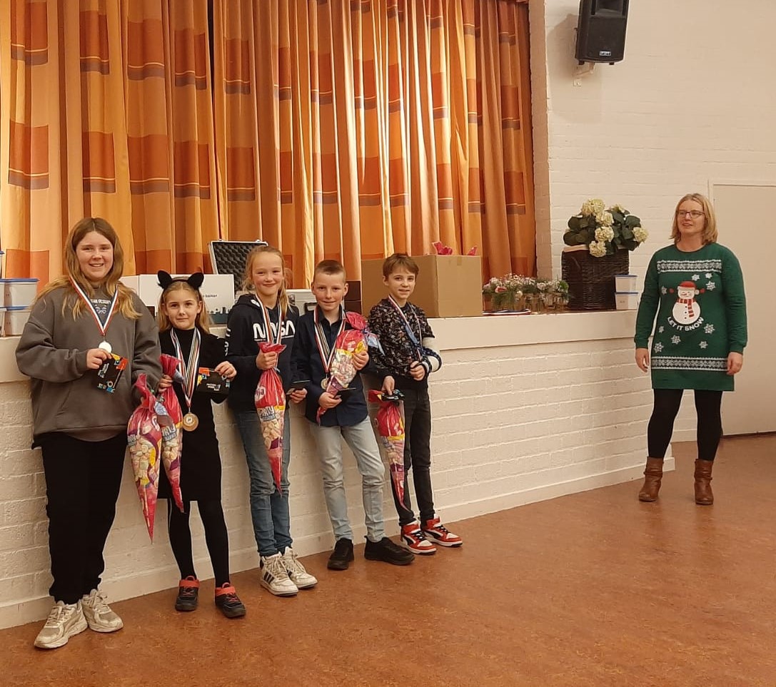 Antoon, lid van de schaakvereniging Bedum, kwam ons de hele middag helpen. Bram mocht niet meedoen maar hielp wel bij de rondes. Hartverwarmend was de hulp van Eline en Noa die de jeugdschakers professioneel hielpen bij vragen tijdens de partij en bij het bijhouden van de uitslagen. Gerda is nu volleerd indeler bij schaaktoernooien na deze middag. Zonder jullie hulp hadden de kinderen niet zo’n geweldige middag gehad. Ook de ouders deden erg enthousiast mee. Maar het feest was vooral voor de kinderen.