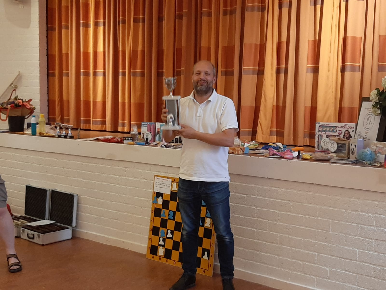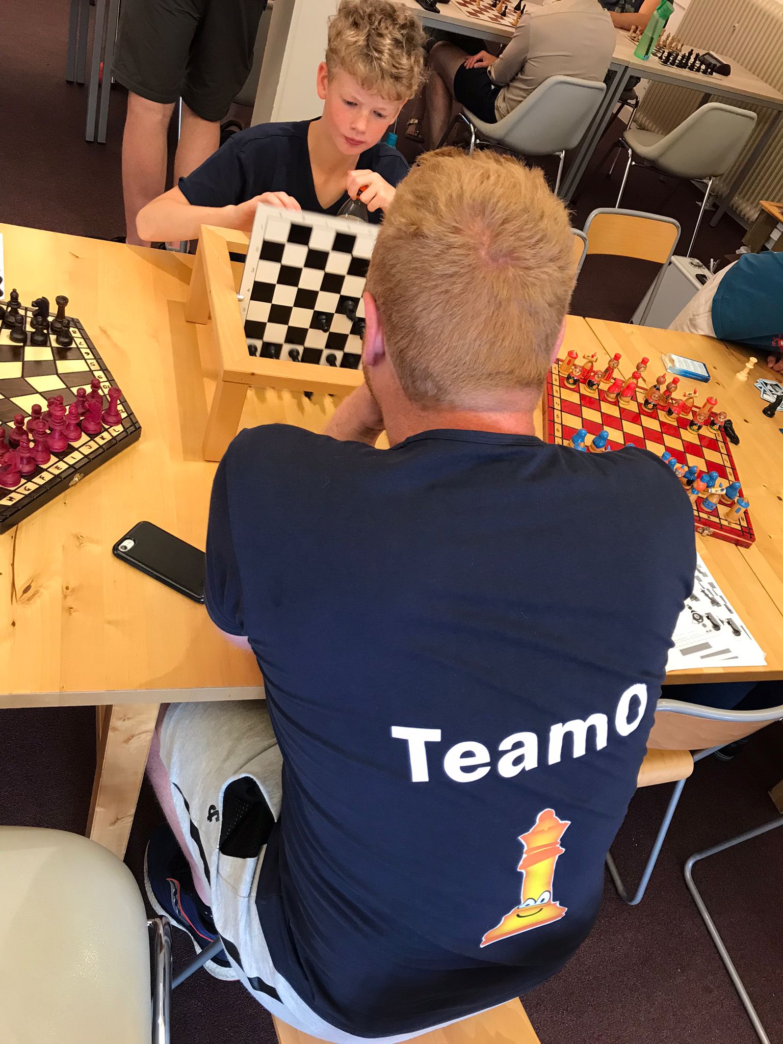 Gisteren hebben we een bijzonder schaakseizoen afgesloten met het achtste Ouder Kind Toernooi in onze clubhistorie. Het werd een erg gezellige middag, waarin maar liefst 30 teams streden om wie de beste teamnaam had, wie de meest bijzondere actie van de middag had, wie de twee schaakproblemen kon oplossen en wie het toernooi ging winnen. Er werd serieus gestreden, maar tijdens de partijen werd ook gezellig gekeuveld, zetten die niet goed waren konden worden teruggenomen en de handicap van sommigen nam toe tot uiteindelijk 24 bij Geon Knol.