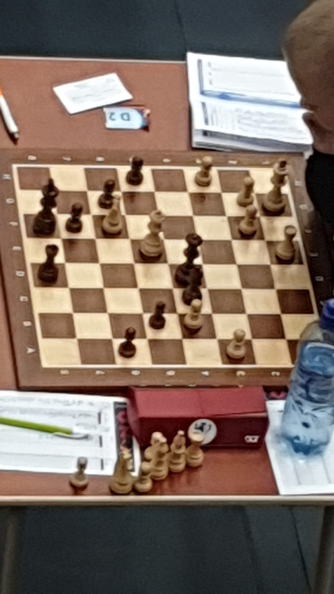 Helaas lukte het me niet om er heen te gaan. Ik moet het doen met twee foto’s. Eén van Bram en Thijs samen en één van een buitengewoon interessante stelling van Bram uit de vierde ronde. Hij won de partij.
