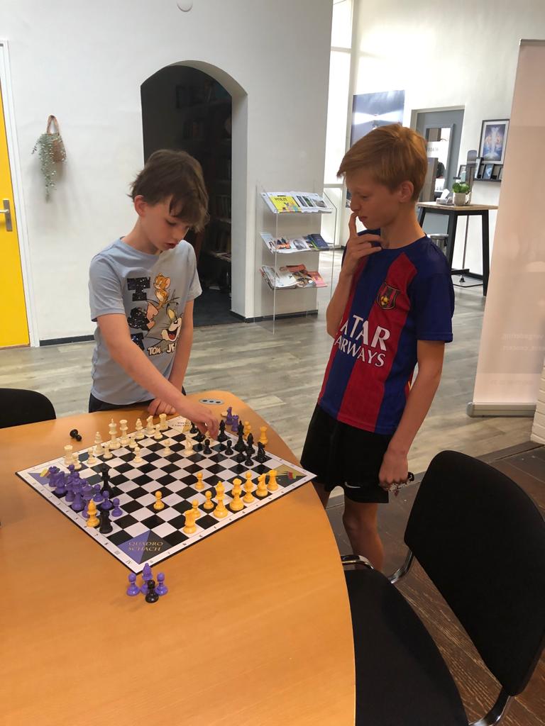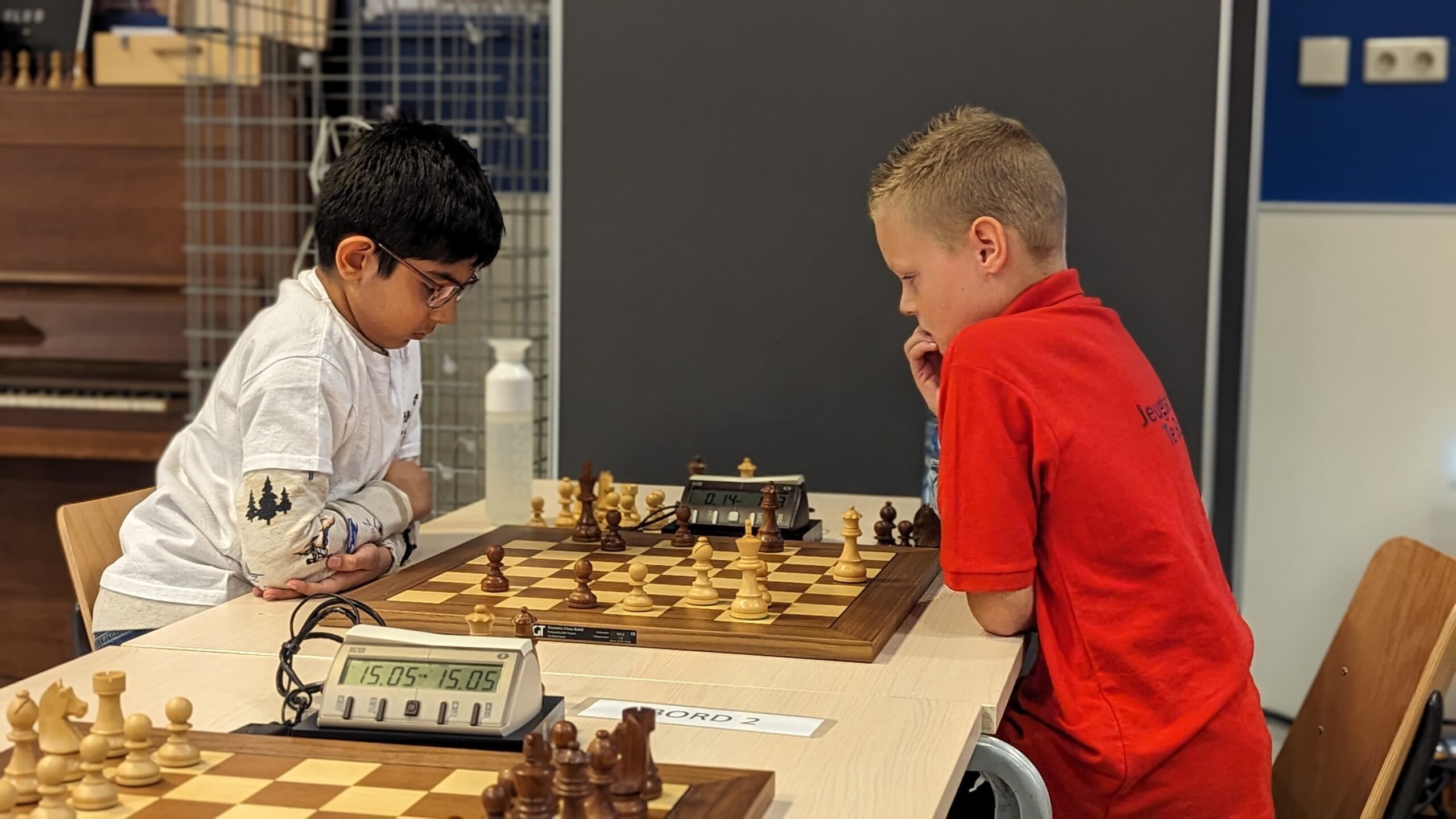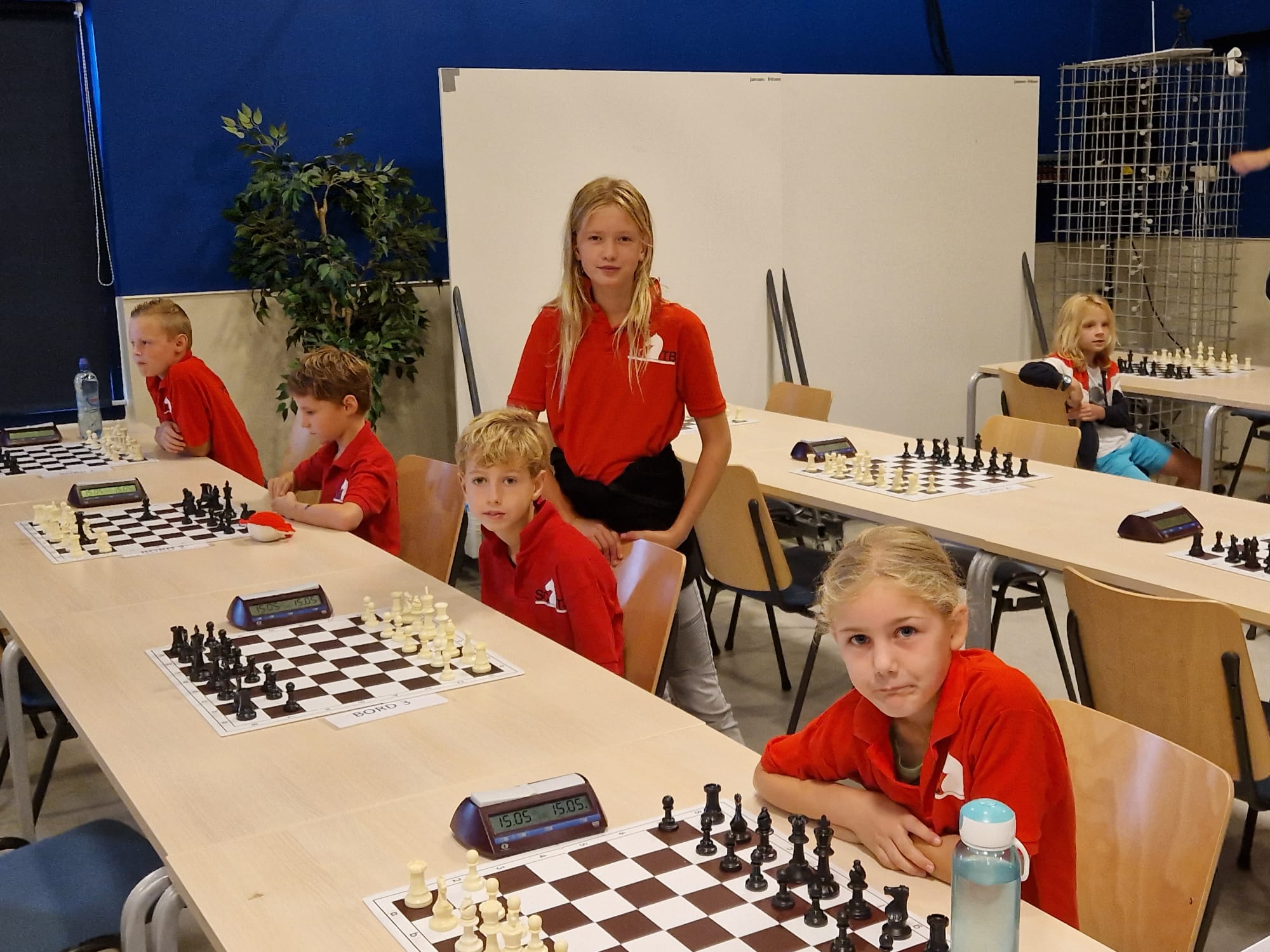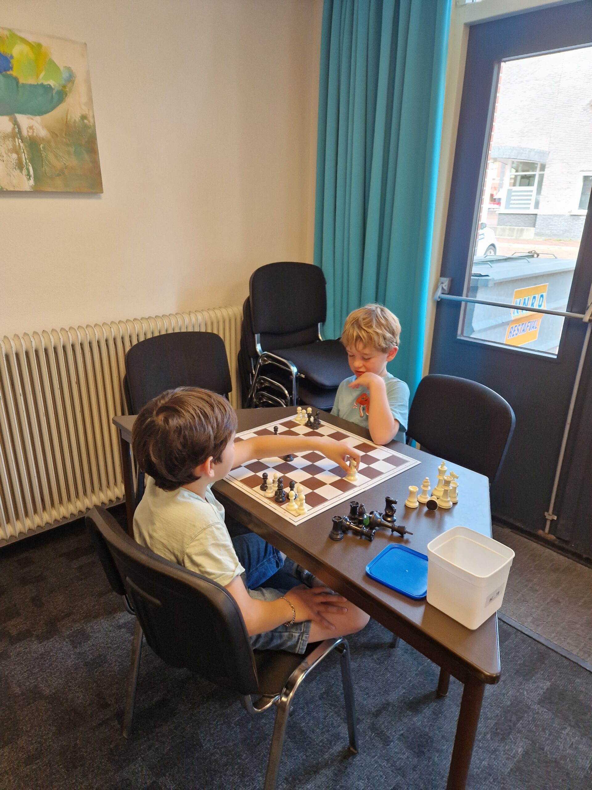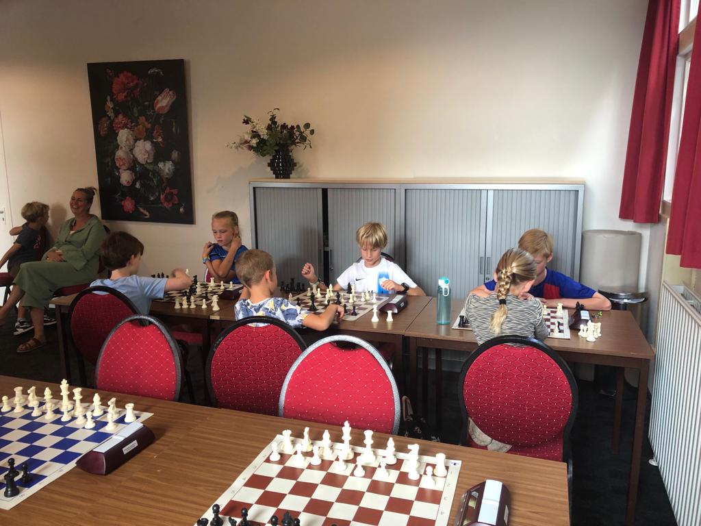 Robert en Freddie begeleidden de twee zeskampen met ervaren jeugdschakers. In de sterkste groep was Bram te sterk voor de anderen aanwezig. Hij won alle vijf partijen. De strijd om de tweede en derde plaats ging tussen Merijn en Joris. Beslissend was hierbij de knappe overwinning die Noa op Merijn haalde. Joris werd tweede, Merijn derde.