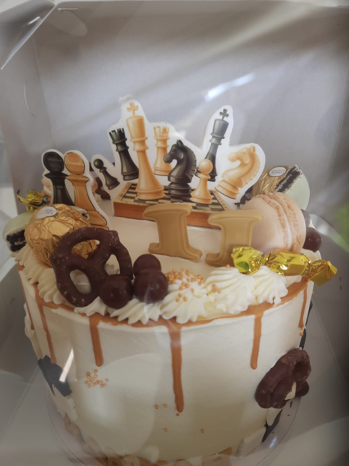 Dit jaar loopt het geweldig met de stappenboekjes. Enkele jeugdschakers uit de VO-groep zijn zelfstandig bezig met stap 3 en hopen ook binnenkort examen te doen. En dan zijn er jeugdschakers die het schaken terug laten komen in een onderdeel van hun verjaardag. Zo kreeg ik een foto van de taart van één van onze jeugdschakers die ik graag wil delen.
