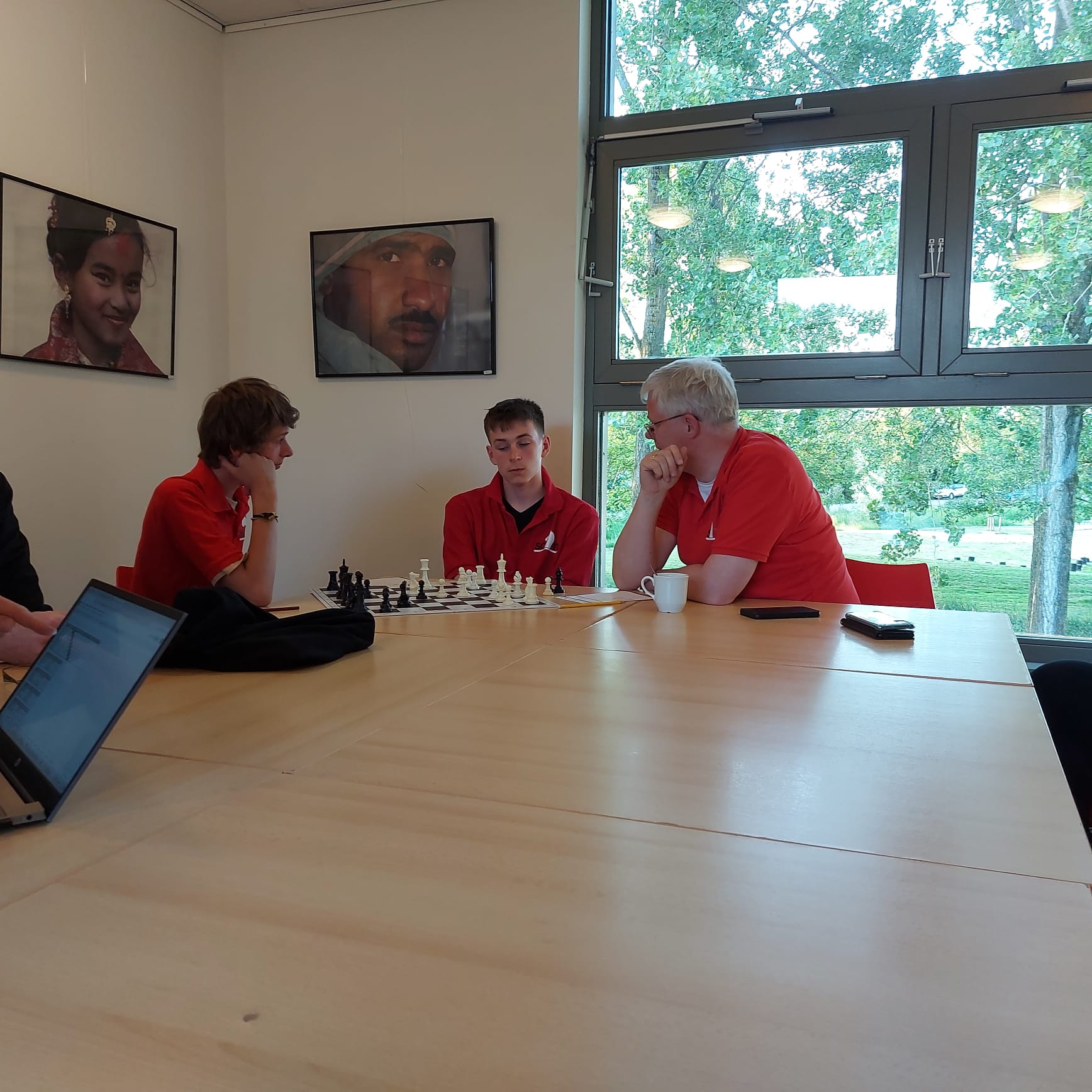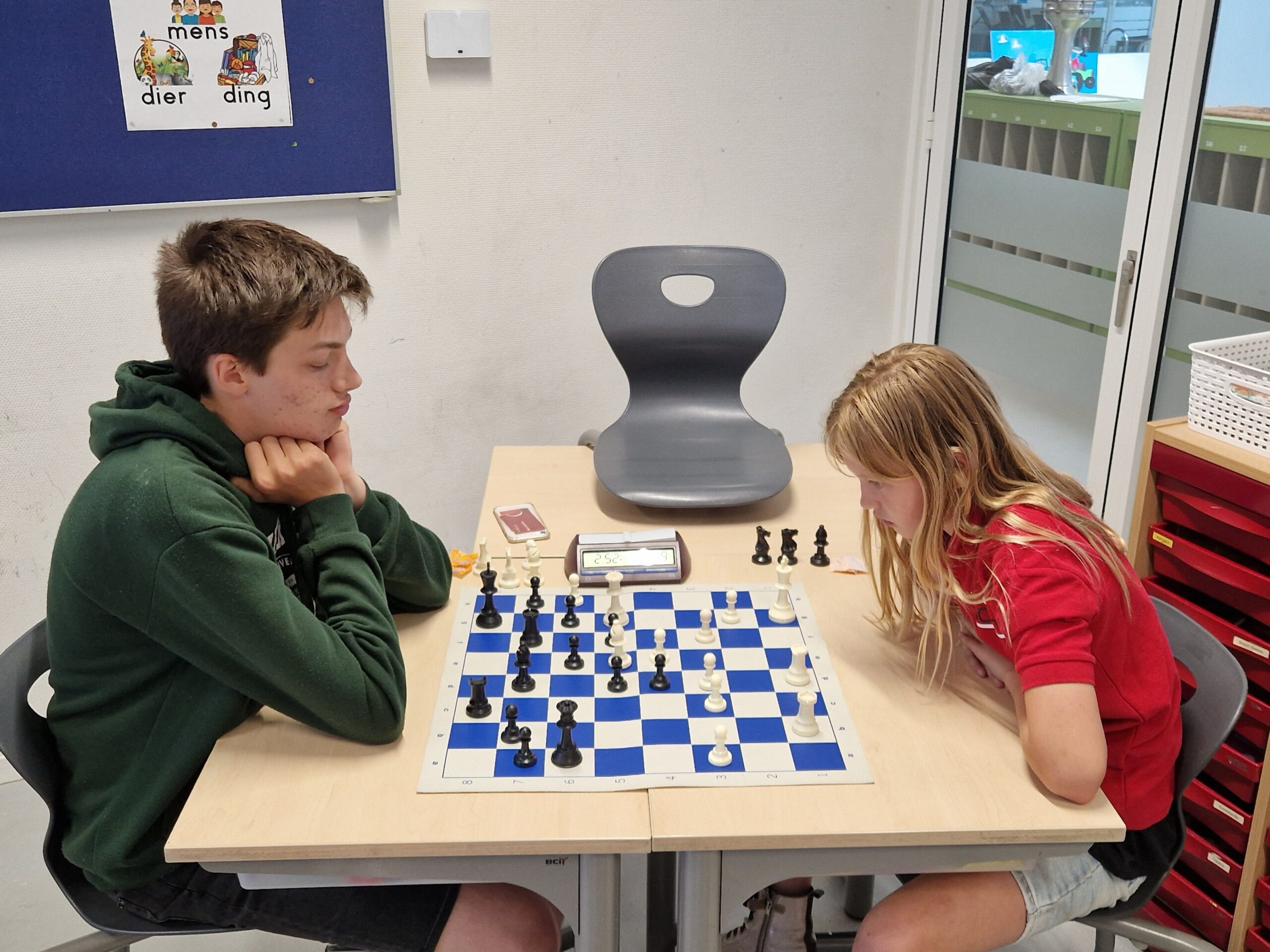 Helaas geen partijmateriaal van Thijmen. Hij zat te ver af. Ik zag een (te) vlot gespeeld pionneneindspel, dat hij won. Voor de rest kon ik er niet veel van maken, behalve dan een stukje lichaamstaal over hoe het ging.