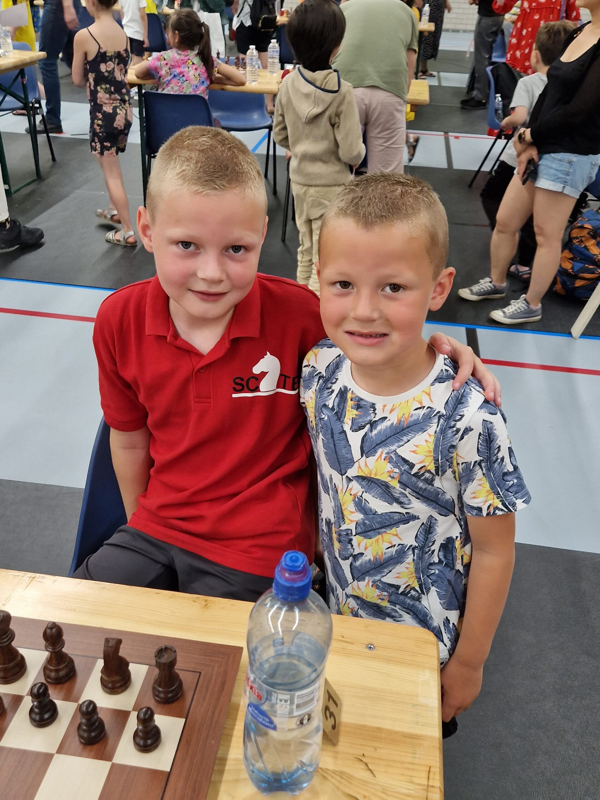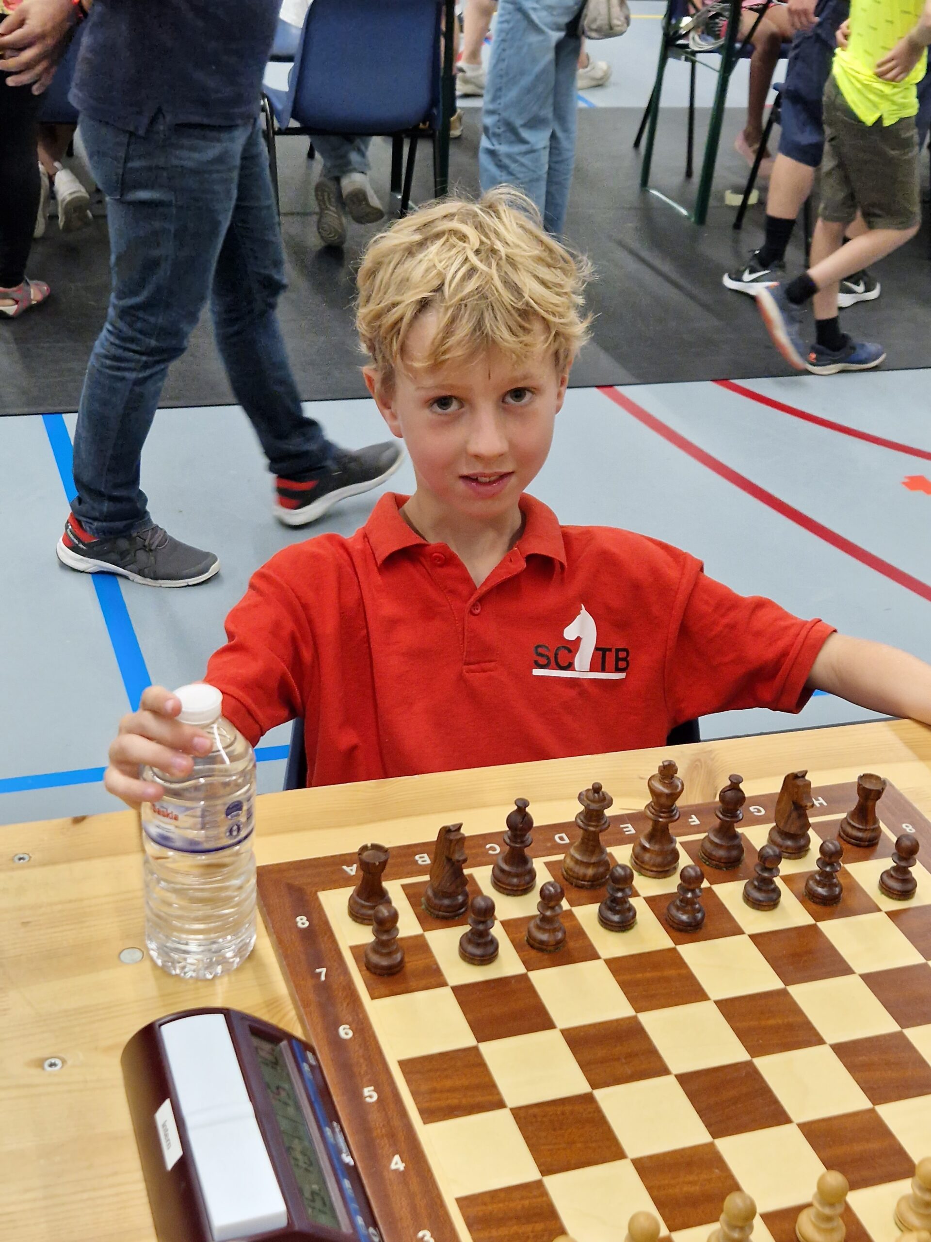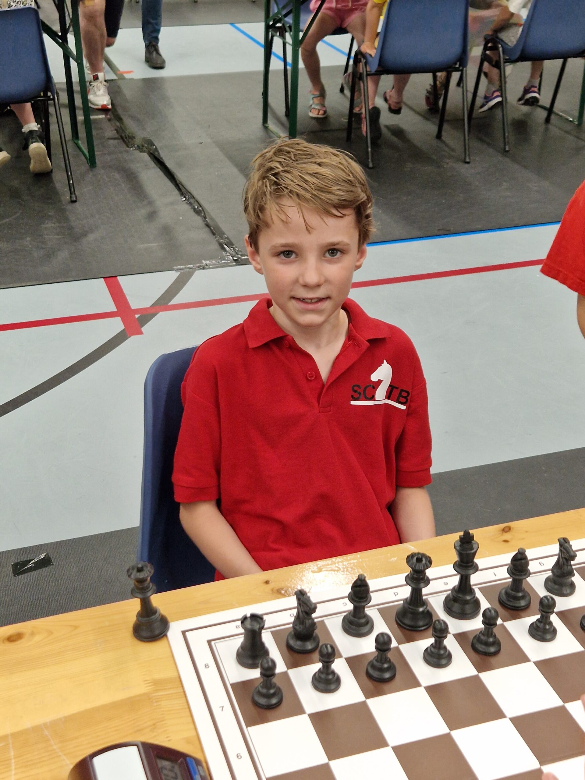 Bram en Thijmen speelden gisteren het Nederlands Basisschoolschaak kampioenschap in Gouda. Dit kampioenschap wordt over 2 zaterdagen gespeeld met gisteren de eerste 6 ronden. De GSV, al jaren één van de sterkste scholen op het kampioenschap, mag met twee teams meedoen. In team 1 speelt Bram mee en in team 2 Thijmen. Thijmen haalde in team 2 een knappe score van 4,5 uit 6. Zijn team staat in de middenmoot. Bram en zijn team staan eerste na dag 1 met 1 matchpunt voorsprong op het sterke Den Bosch. Bram scoorde 5,5 uit 6 op bord 2. Volgende week zal de belangrijke wedstrijd tegen Den Bosch waarschijnlijk als eerste op het programma staan.