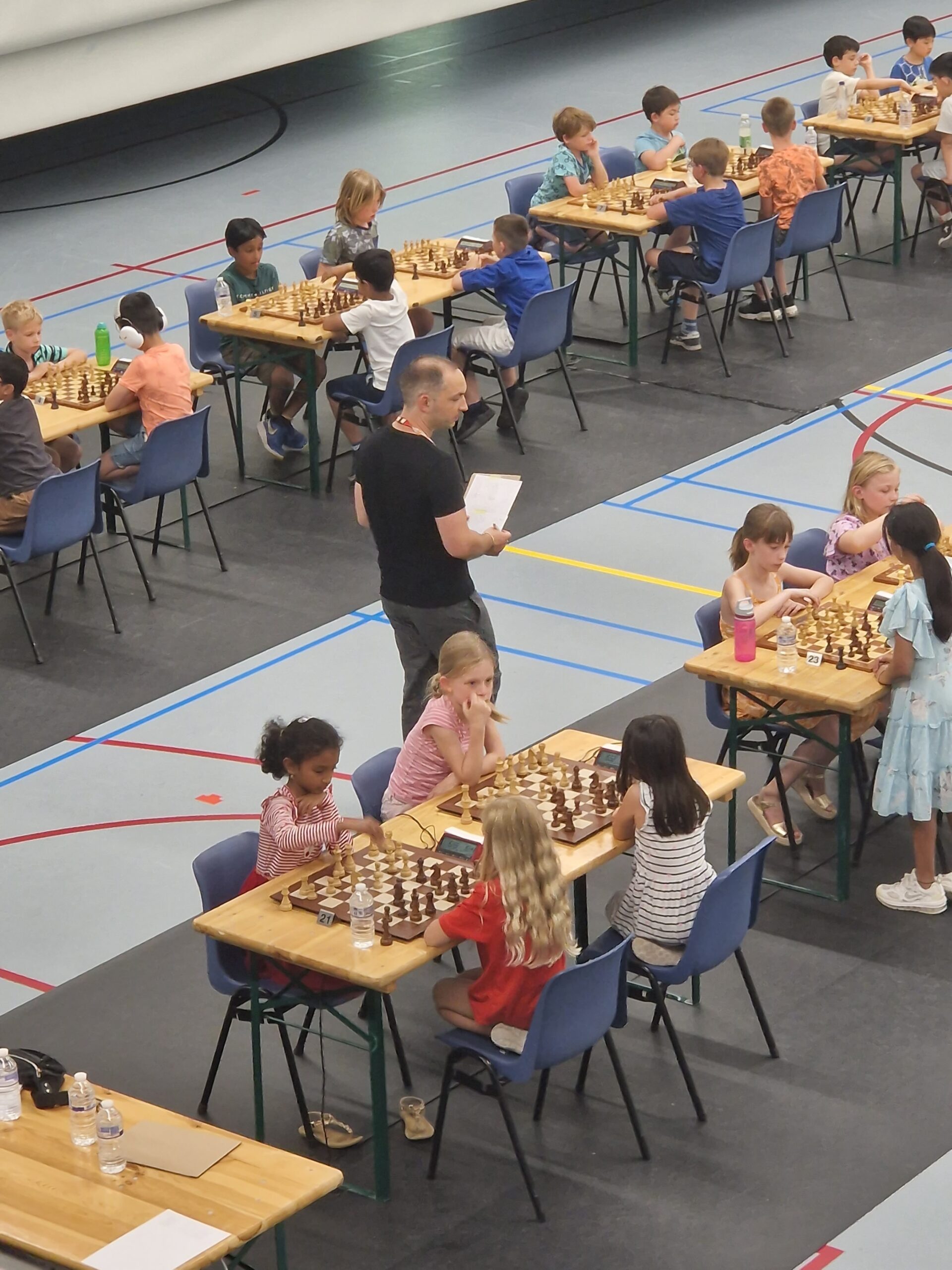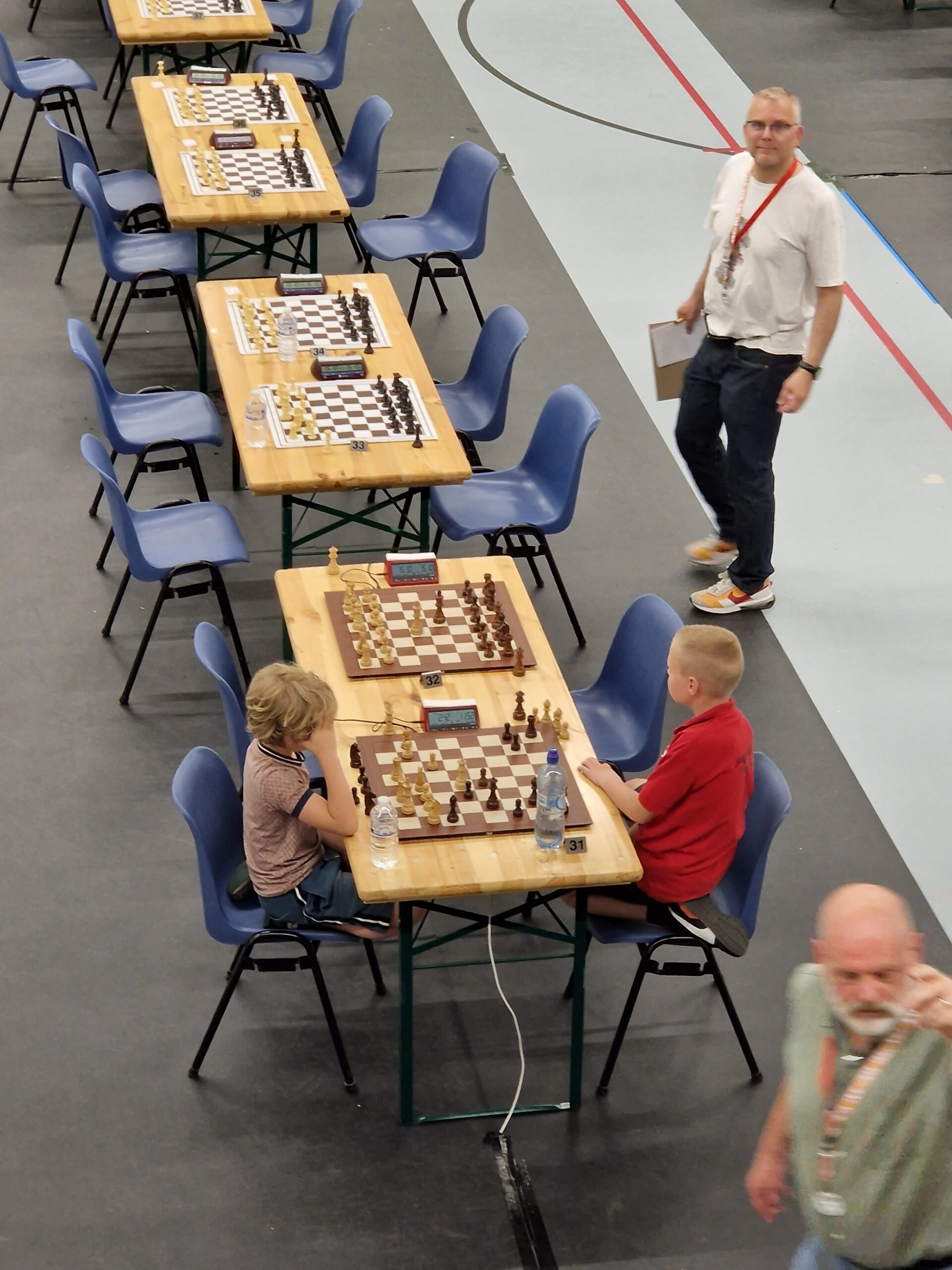 Voordat ik inga over het schaken, wil me toch nog wat van het hart. Het pupillenkampioenschap is strak georganiseerd. Terecht. Zo mogen er geen ouders in de zaal, er mogen geen mobieltjes zichtbaar zijn op de tribune. Foto’s nemen kon alleen de eerste twee minuten van een ronde. Omdat ik tijdens de opening mijn mobiel uit de auto moest halen had ik dit niet meegekregen. Het leverde een schrobbering op toen ik aan het eind van de eerste ronde een foto nam: