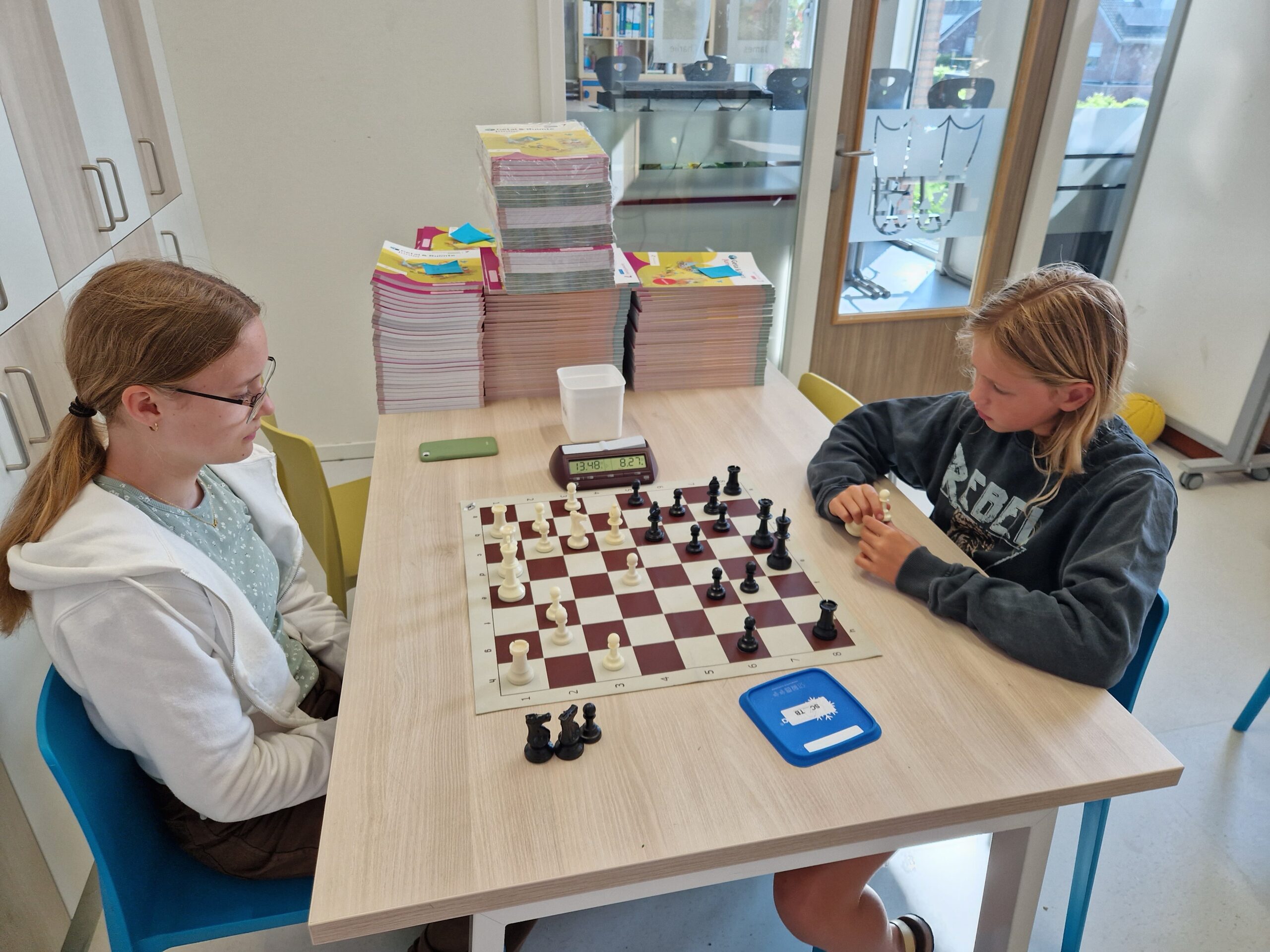 Lieke speelde gisteren de sterren van de hemel. Goede concentratie. Gelukkig speelde zij een paar keer op een livebord, dus hier kunnen we wel wat over het schaken vertellen!