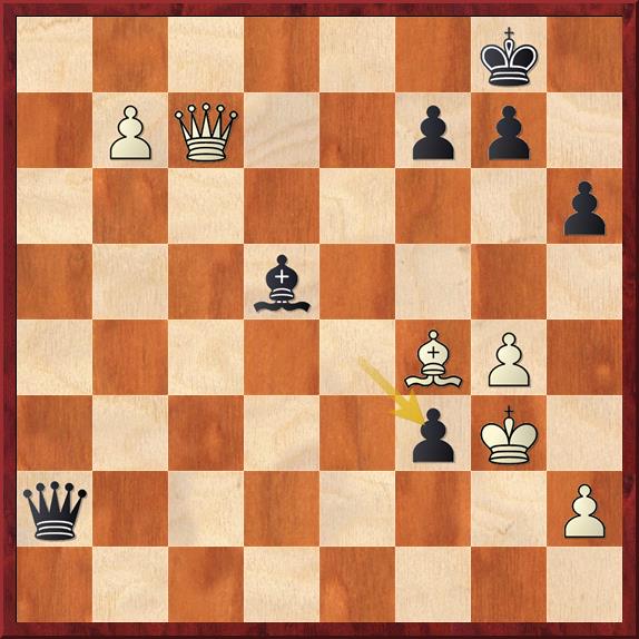 leidt naar mat met 5… Dg2+ 6. Kh4 g5+ 7. Lxg5 Dxh2#) 5. b7 exf3? (5… Lxb7 is beter voor wit, maar nog niet helemaal uit)