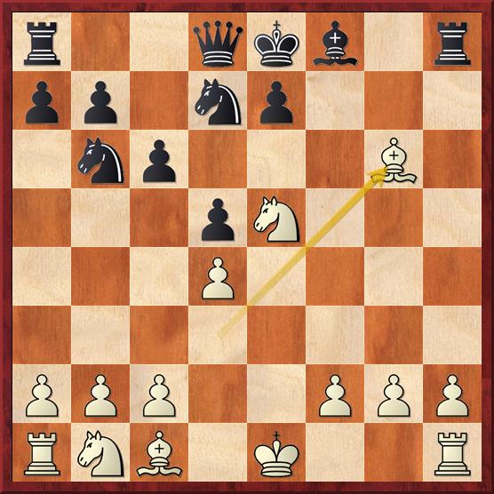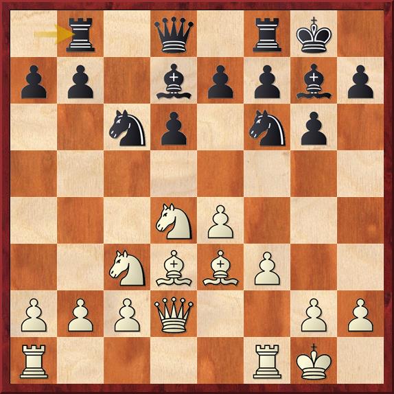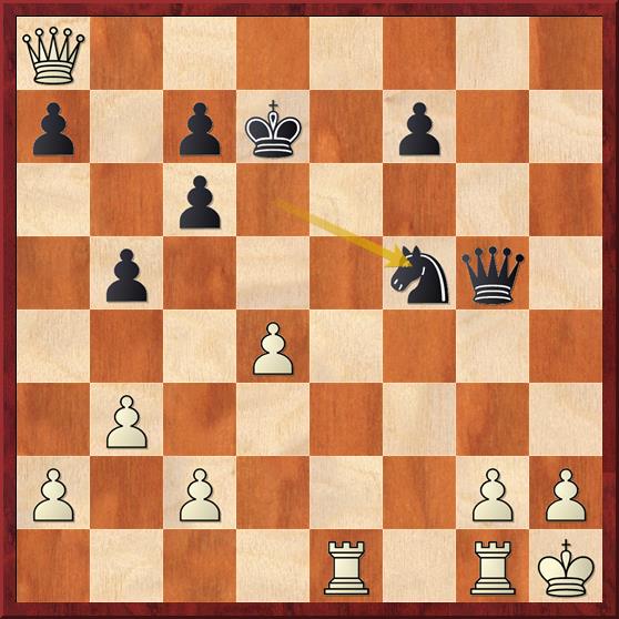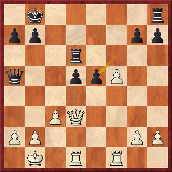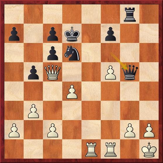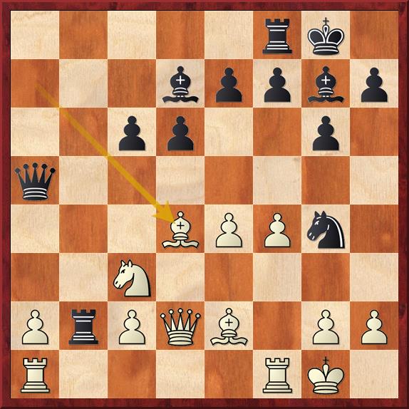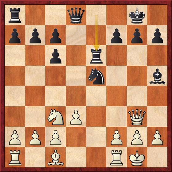 en nu komt de vernietigende zet 15… Txc2 16. Dxc2 Lxd4+ 17. Kh1 Pe3 18. Dd3 Dxc3 19. Dxc3 Lxc3 20. Tac1 Pxf1 21. Txc3 Pd2 met winst. Een mooie combinatie. Ik moet zeggen dat ik 15… Txc2 niet zo snel had gezien.