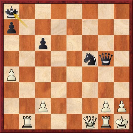 Hieer heeft zwart opeens een matdreiging gemaakt. Lieke reageert goed: 36. Tfg1 Th8 (dreigt 37… Txh2+ 38. Kxh2 Dh4#) 37. De5! Dekt h2 en valt de toren op h8 aan wat zwart miste waardoor Lieke 38. Dxh8+ kon spelen.