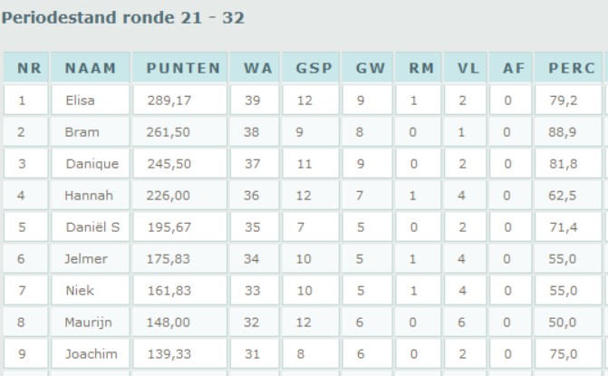 In periode 3 leidt Bram en lijkt op de periodetitel af te gaan. De beste niet periodekampioen is momenteel Jan Steenstra. Hierbij de twee tussenstanden: