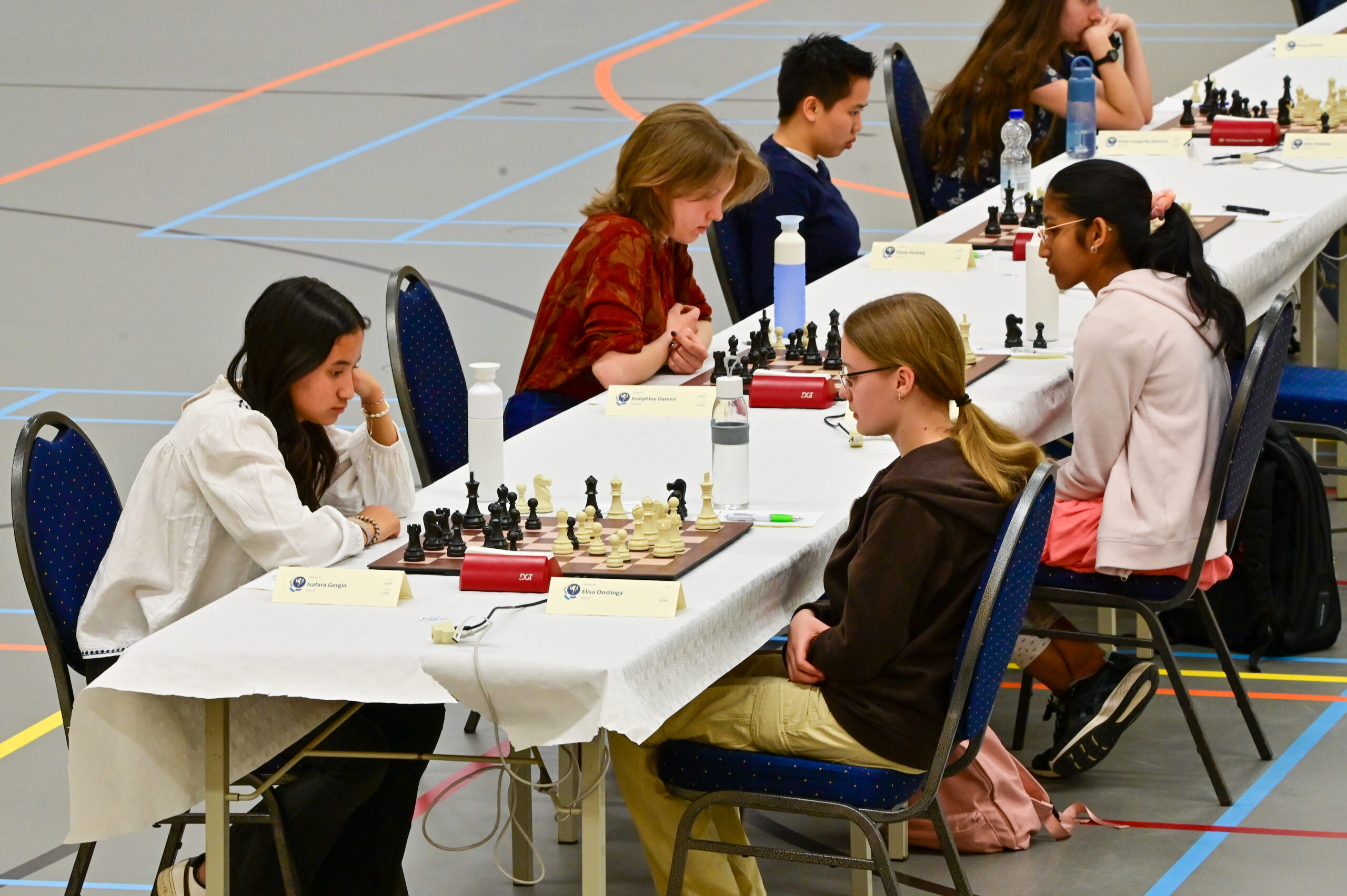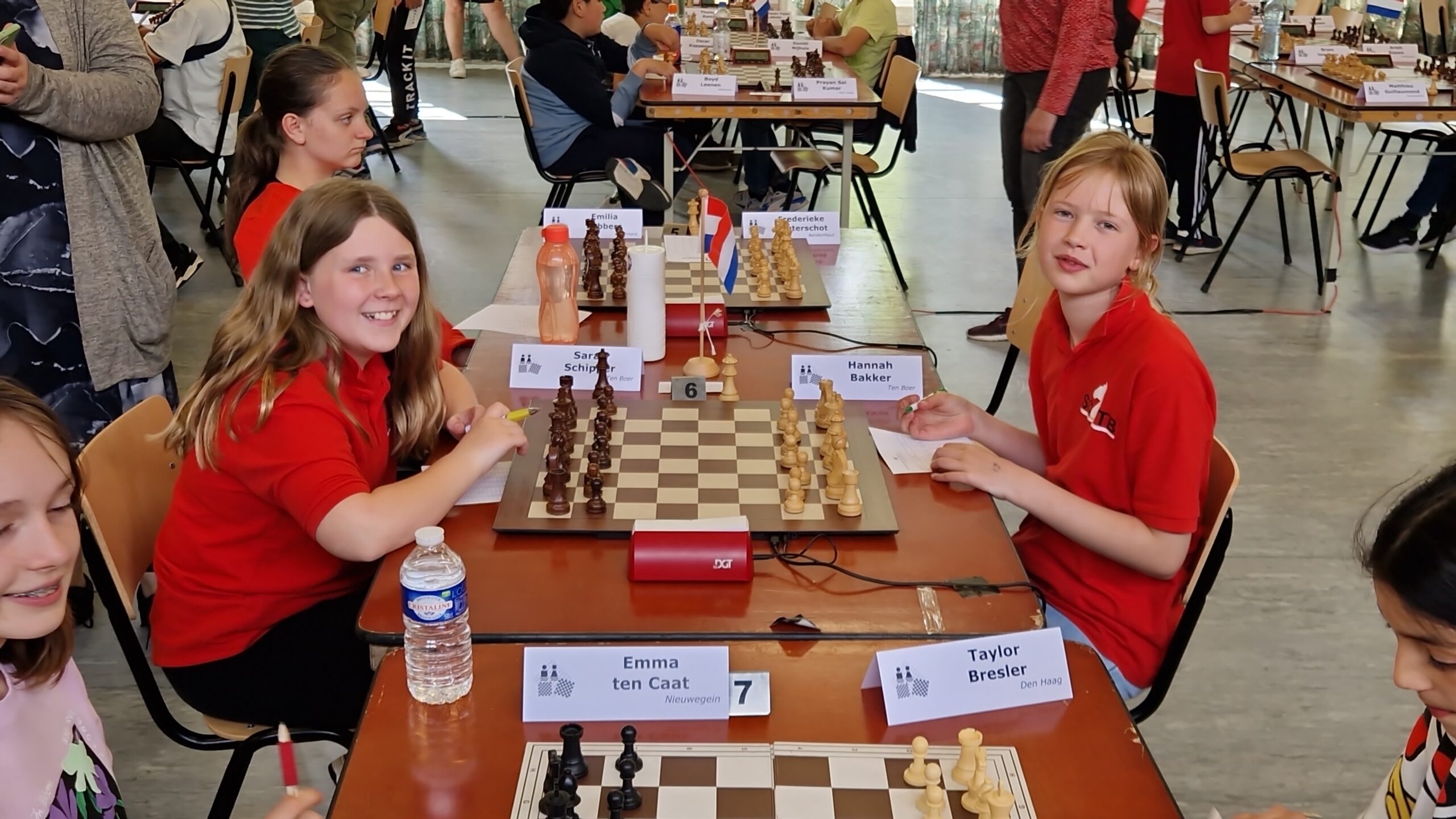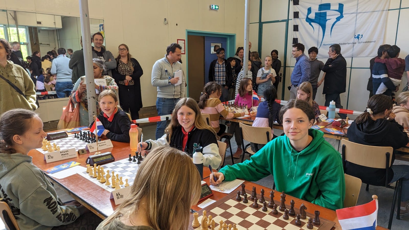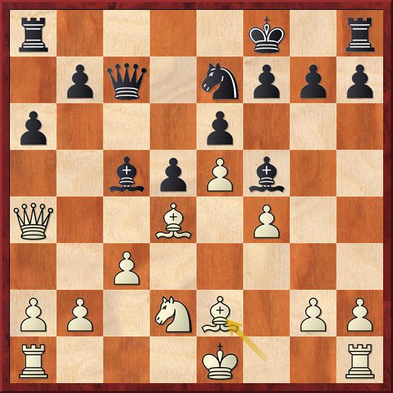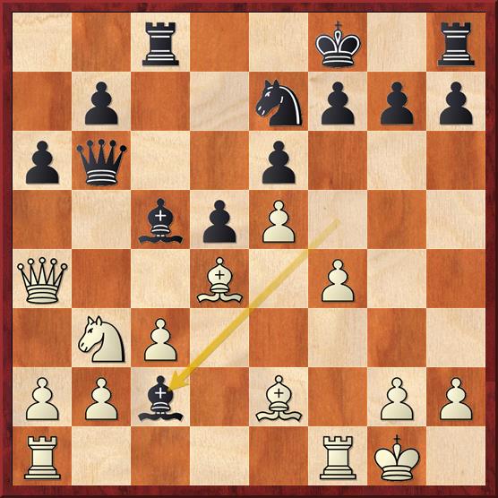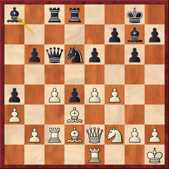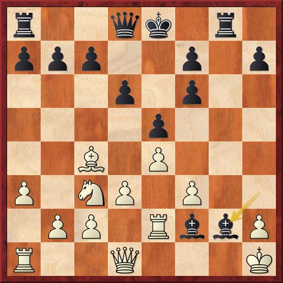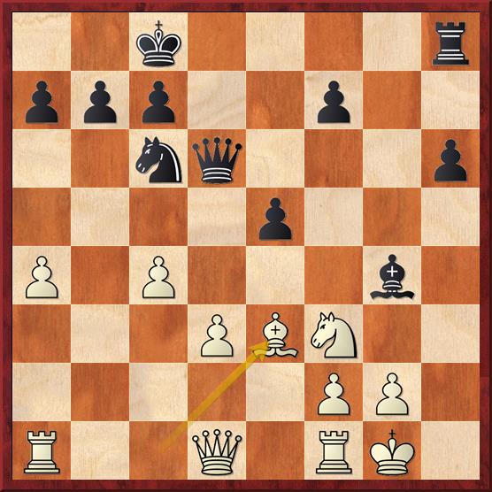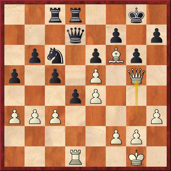 Het is een plaatje: alle stukken van zwart werken mee met de aanval en er dreigt naast Lxf3 ook e4 en Pe5, bijvoorbeeld 23. Kh1 (om uit de penning te gaan) 23… Dg6 (dreigt de koning met Dh5+ weer terug te jagen naar de penning over de g-lijn) 24. g3 (om met de koning het paard op f3 te dekken) 24… Dh5+ 25. Kg2 e4 (daar komt hij!) 26. dxe4 Pe5 en de witte stelling stort in. Een prachtig voorbeeld van penningen die er voor zorgen dat de witte stukken de koning niet meer kunnen helpen. In plaats daarvan speelde Hannah 22… Dg7 23. Thd1 Lh3? en nu kreeg wit net de tijd om de verdediging op orde te brengen met 24. Pe1