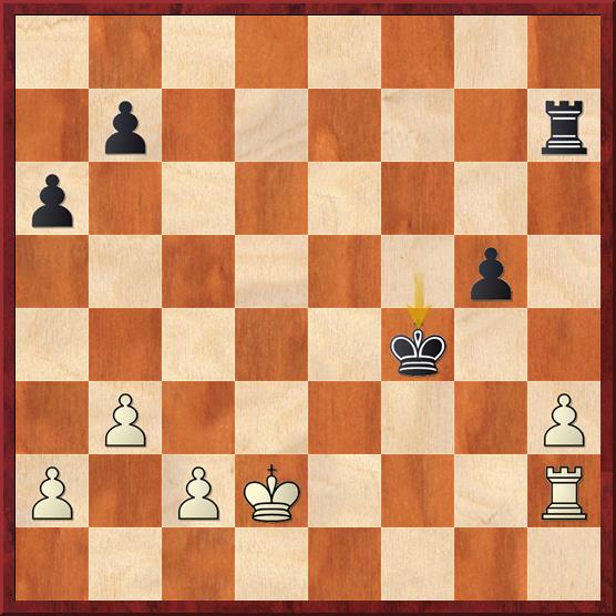 56… Lc6+ 57. Kxe5 f3 58. d7 is winnend, dus zwart kan het nog proberen in het pionneneindspel na 56… Lxf5+ 57. Kxf5 en nu lijkt zwart gelijk met wit te promoveren na 57… f3 58. d7 Ke7 59. h7 f2