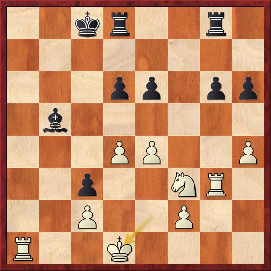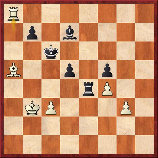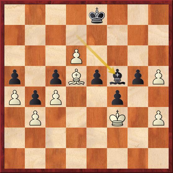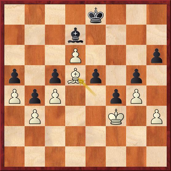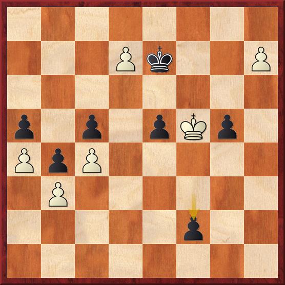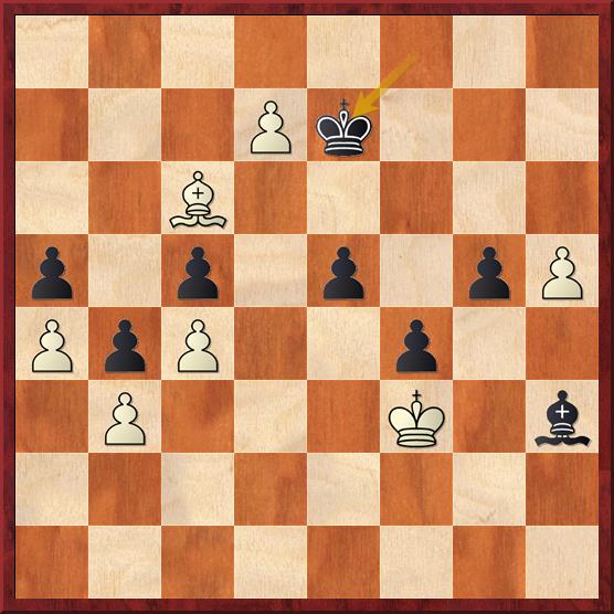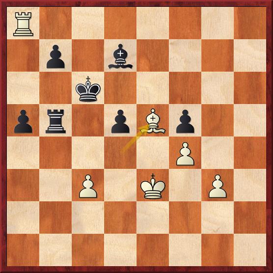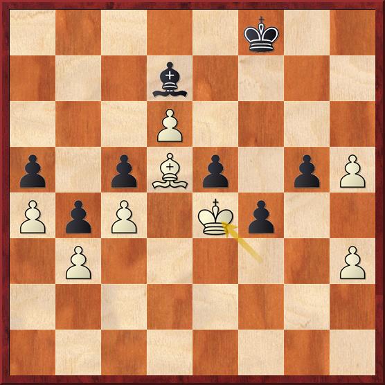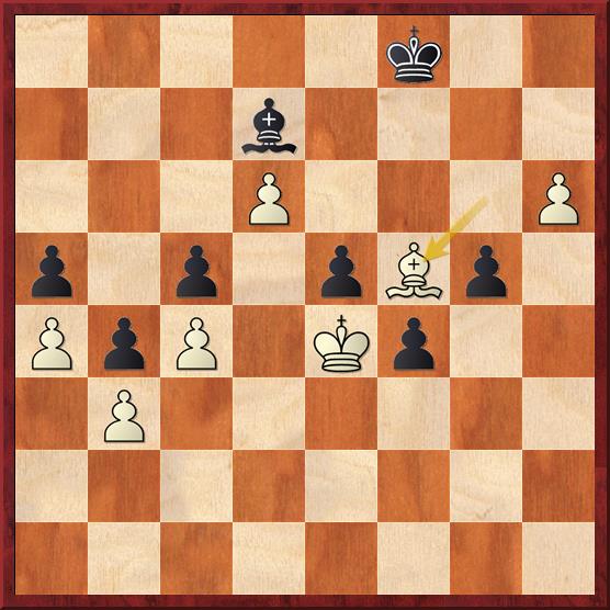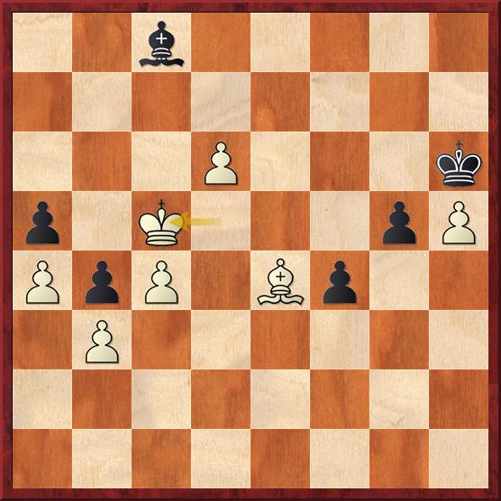 en nu geen 54. h6?? Lf5 55. Le4 vanwege 55… g4+ met winst. Winnend is 54. Ke4! (dekt veld f5) Lg2+ 55. Kxe5 Lxc6 56. h6 en de h-pion is niet meer te stoppen zonder dat de d-pion promoveert.