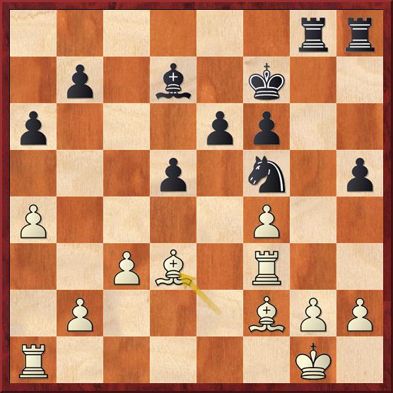 In deze stelling is vermoedelijk 28… b5 29. axb5 axb5 30. Pd6 Txc1 31. Txc1 h5 een optie om de gevaren rondom de zwarte koning te bezweren. In plaats daarvan volgde 28… Pb4 (dreigt Pd3) 29. Lh3 Te8 29… Tcd8 lijkt erg gevaarlijk vanwege 30. Pe5, maar zwart heeft een verbluffende verdediging door met de koning naar f8 te lopen: 30… Kg8 31. Le6+ Kf8 en nu blijkt dat zwart na 32. Tc7 Pd3 kan spelen en het gevaarlijke paard kan ruilen. Een variant die onmogelijk is te vonden in de weinige tijd die Bram nog op de klok had, maar des te opmerkelijker is dat Bram in een andere variant tegen mij zei dat hij niet zo bang voor het aftrekschaak met de loper was omdat hij alle belangrijke stukken op zwart heeft gezet. En dat klopt in deze variant: 33. Pxd3 exd3 ziet er erg gevaarlijk uit, maar na 34. Tf7+ Ke8 heeft wit geen nuttig aftrekschaak!. Een paar zetten later had wit wél gebruik kunnen maken van de zwakke positie van de zwarte koning