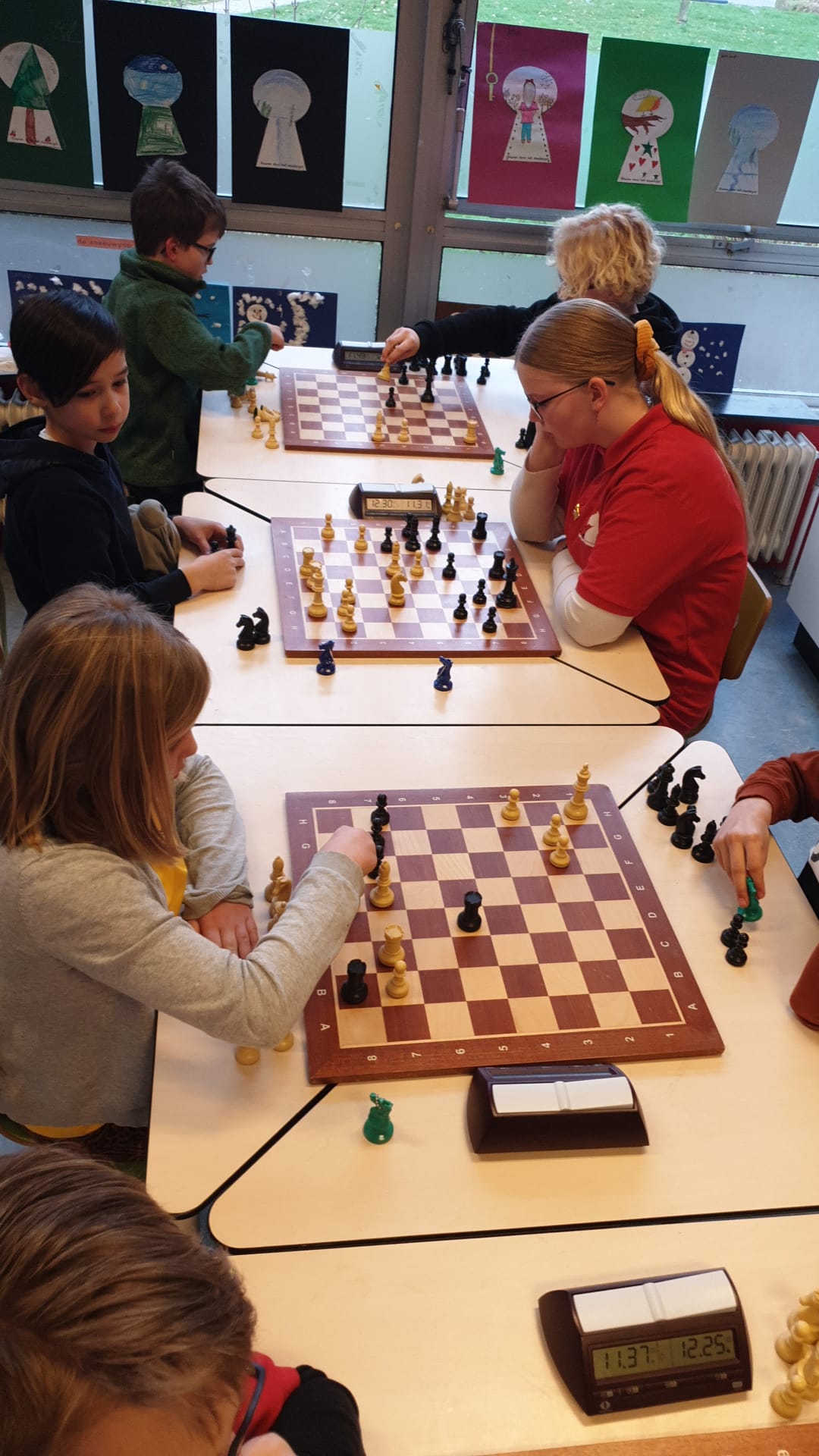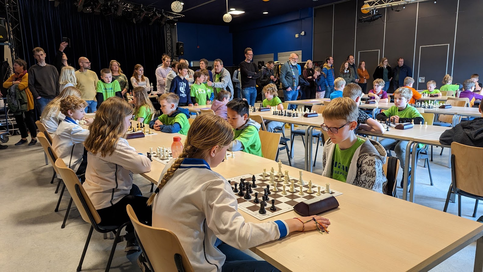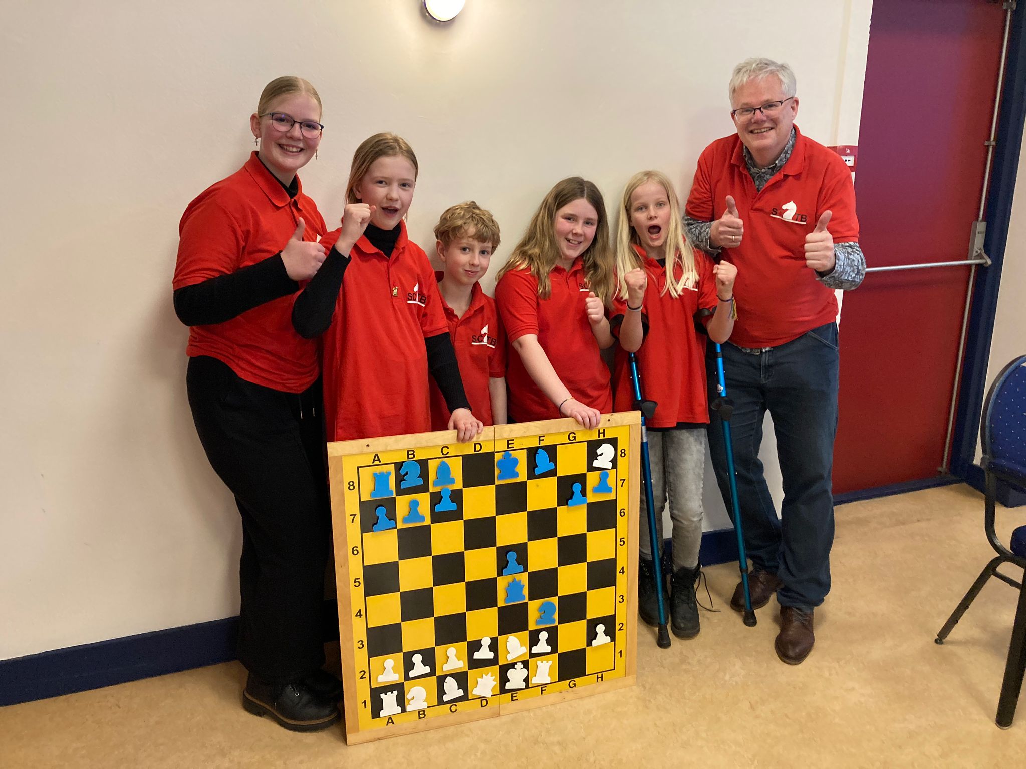 Vanmiddag was het BSK van de stad en de provincie Groningen in het Denksport Centrum. Er deden 15 teams van 12 scholen mee, dus zeg maar iets meer dan 60 jeugdschakers. Bijzonder voor onze club is dat er maar liefst tien clubleden bij vier scholen meededen en dat daarnaast Liva en Evie ook de hele middag aanwezig waren. Liva had gisteravond alle stukken opgesteld. Verder speelden Bram en Thijmen bij GSV1 resp. GSV2. Timo en Imre deden het geweldig bij de Walfridusschool uit Bedumen Isa speelde mee bij ’t Kompas uit Lewenborg. De meeste clubleden speelden mee bij de Fontein uit Ten Boer: Paulien, Noa, Joris, Sarah en Hannah.