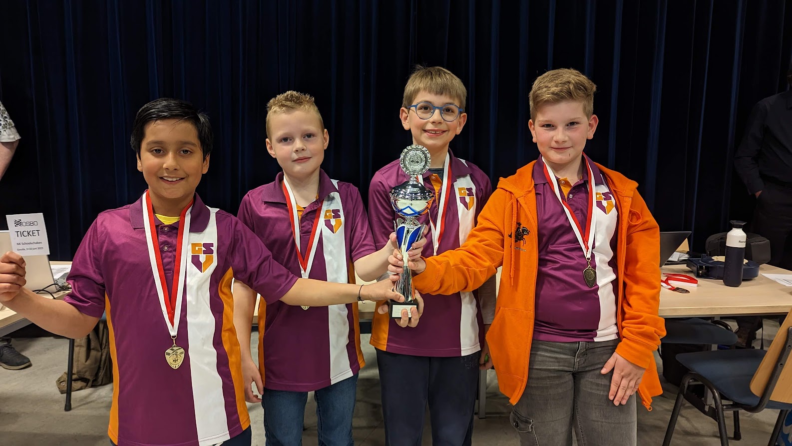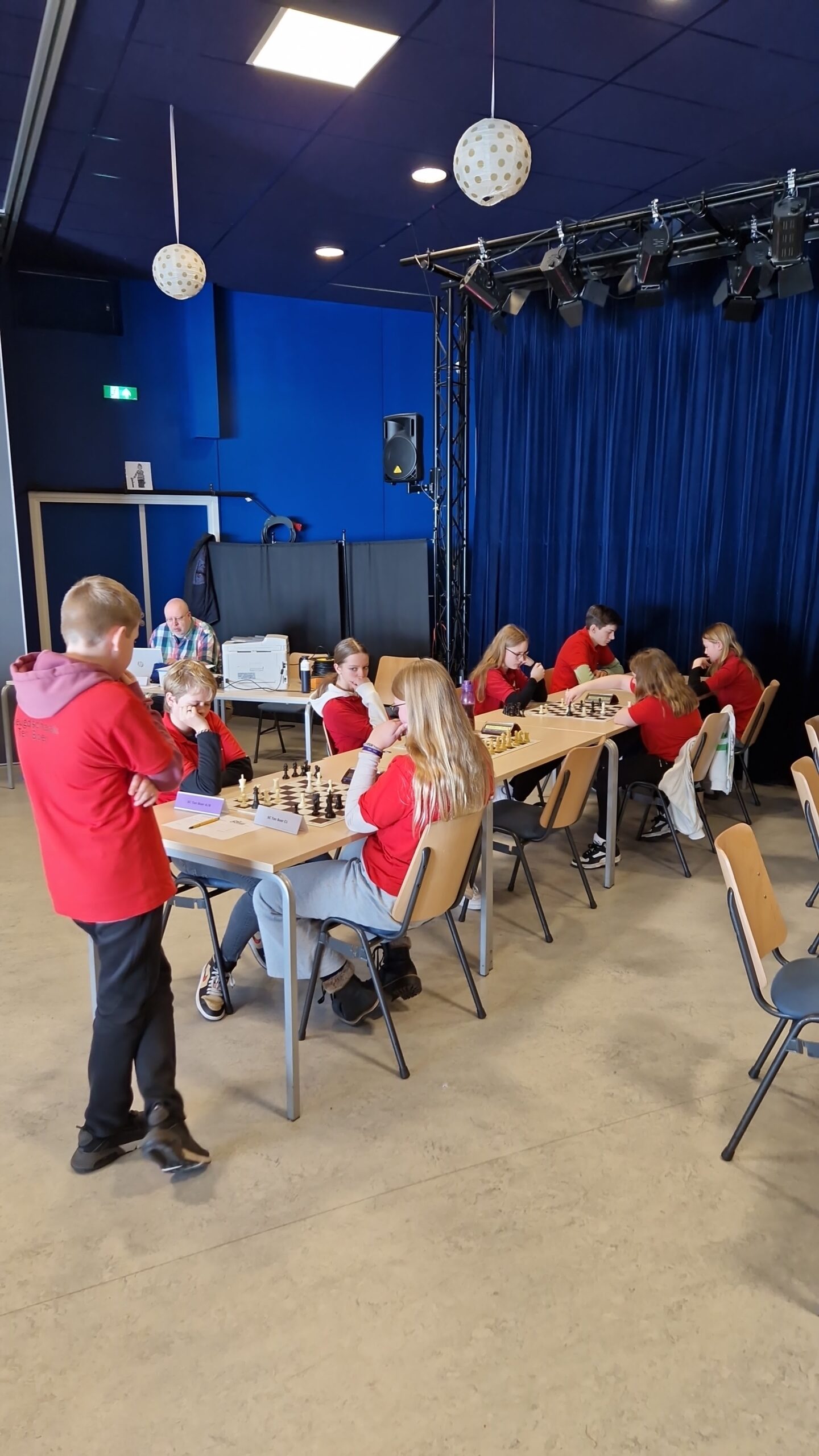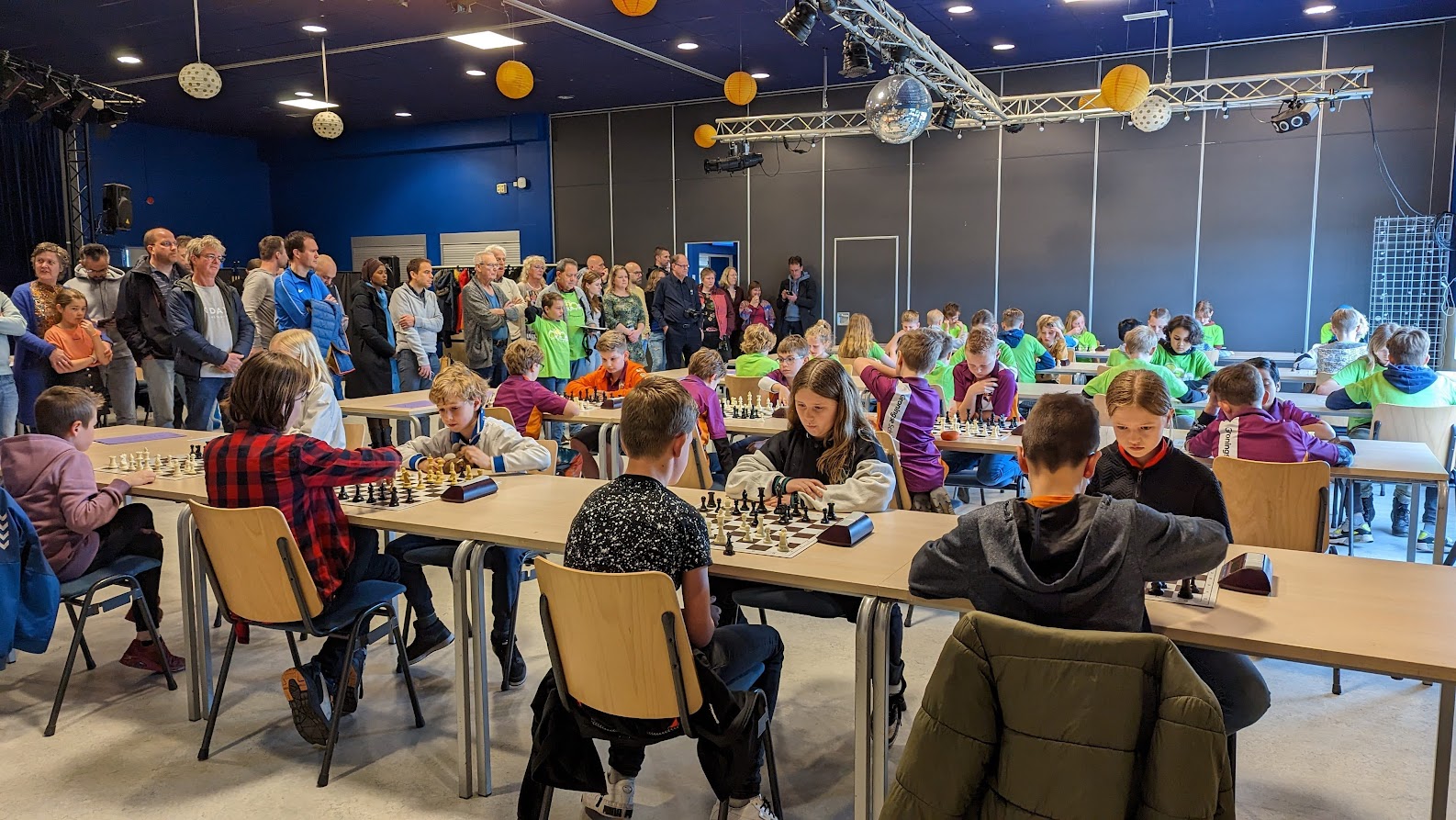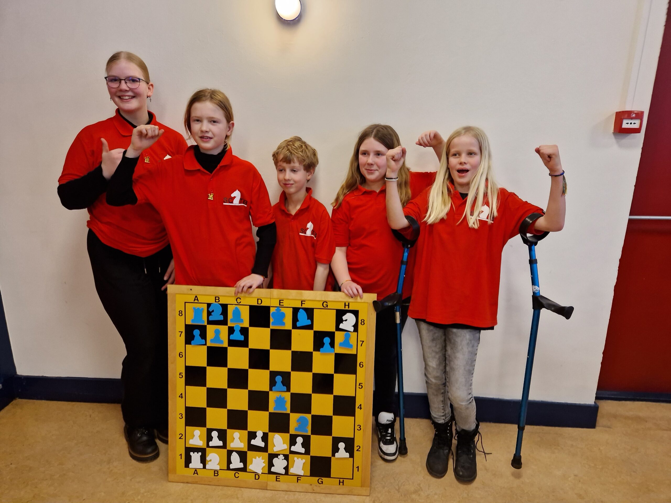 Vanmiddag was het BSK van de stad en de provincie Groningen in het Denksport Centrum. Er deden 15 teams van 12 scholen mee, dus zeg maar iets meer dan 60 jeugdschakers. Bijzonder voor onze club is dat er maar liefst tien clubleden bij vier scholen meededen en dat daarnaast Liva en Evie ook de hele middag aanwezig waren. Liva had gisteravond alle stukken opgesteld. Verder speelden Bram en Thijmen bij GSV1 resp. GSV2. Timo en Imre deden het geweldig bij de Walfridusschool uit Bedumen Isa speelde mee bij ’t Kompas uit Lewenborg. De meeste clubleden speelden mee bij de Fontein uit Ten Boer: Paulien, Noa, Joris, Sarah en Hannah.