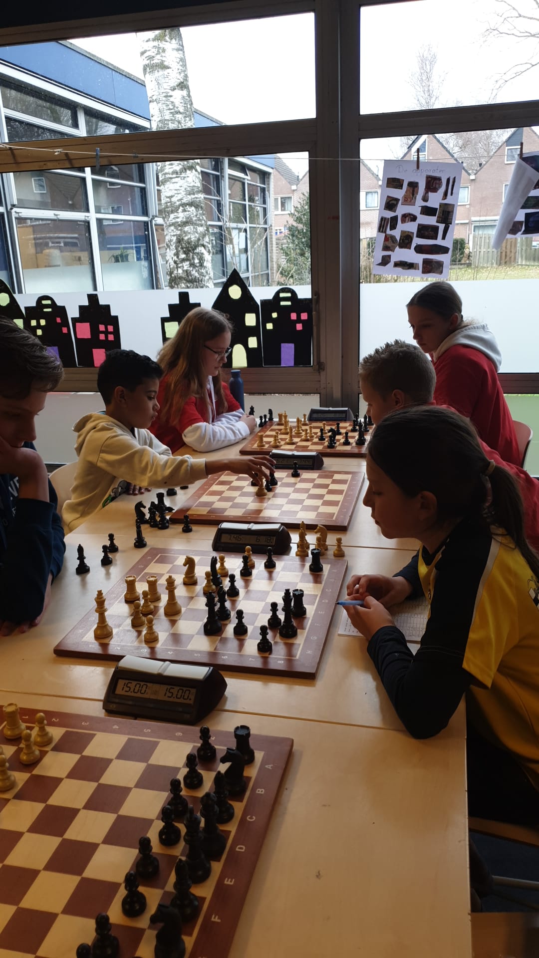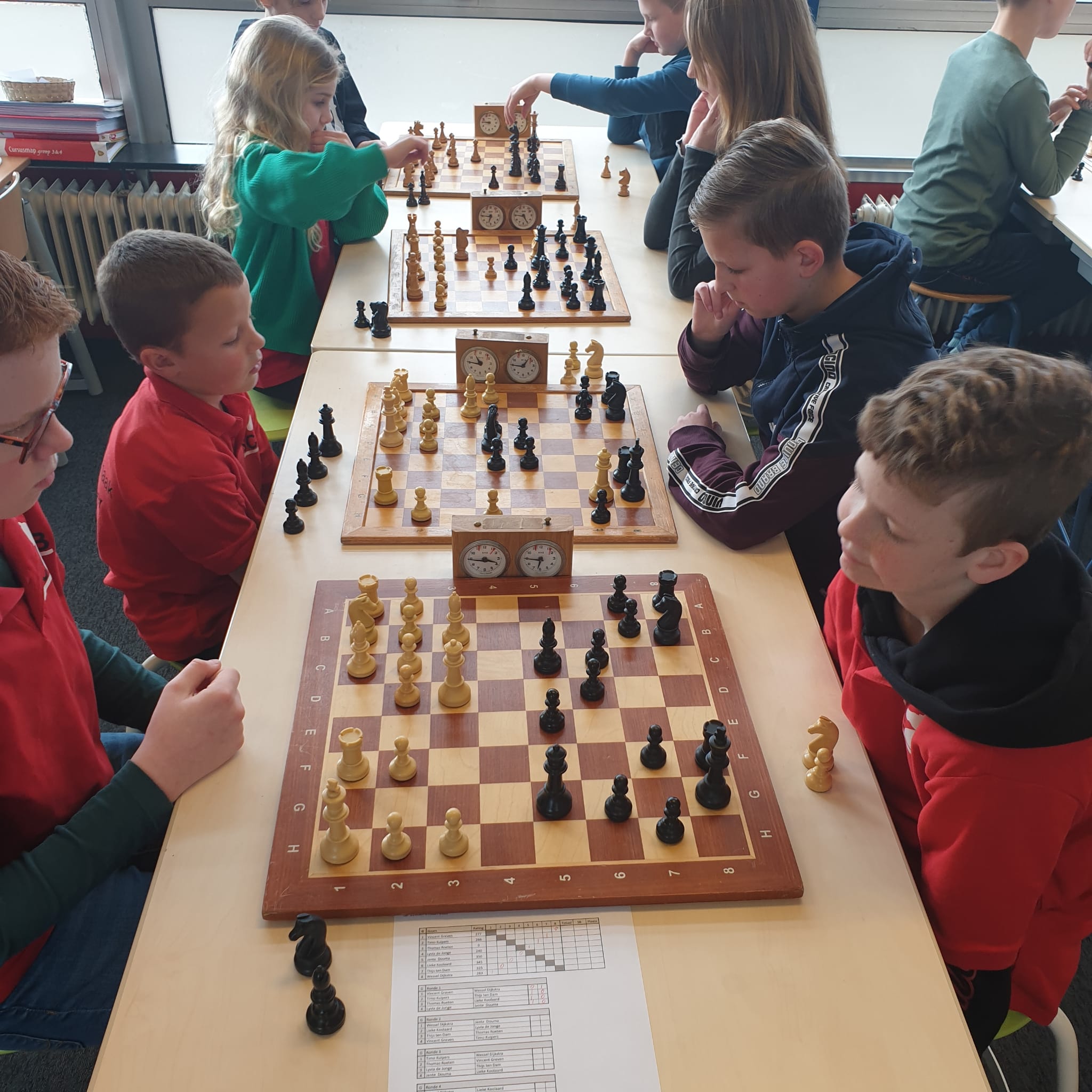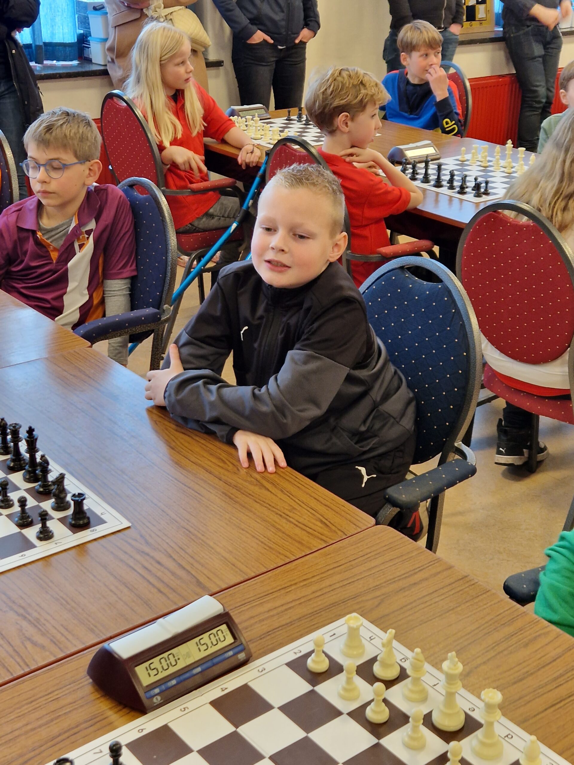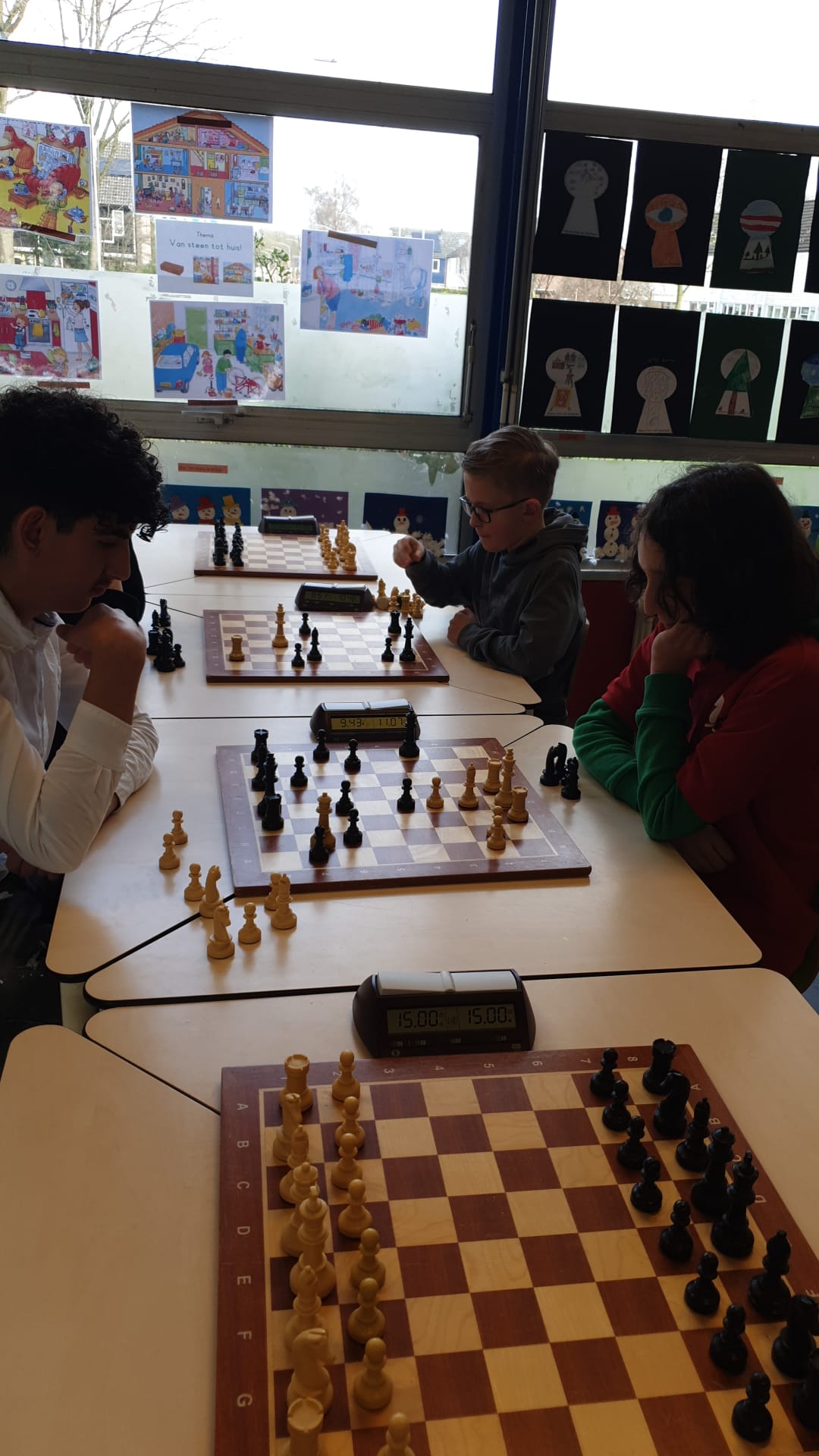 Noa scoorde 70% en wist enkele keren een verloren stelling in vliegende tijdnood alsnog te winnen. Ze is zoveel beter geworden en dat kwam nu naar voren. Joris en Thijmen haalden 7 uit 9.