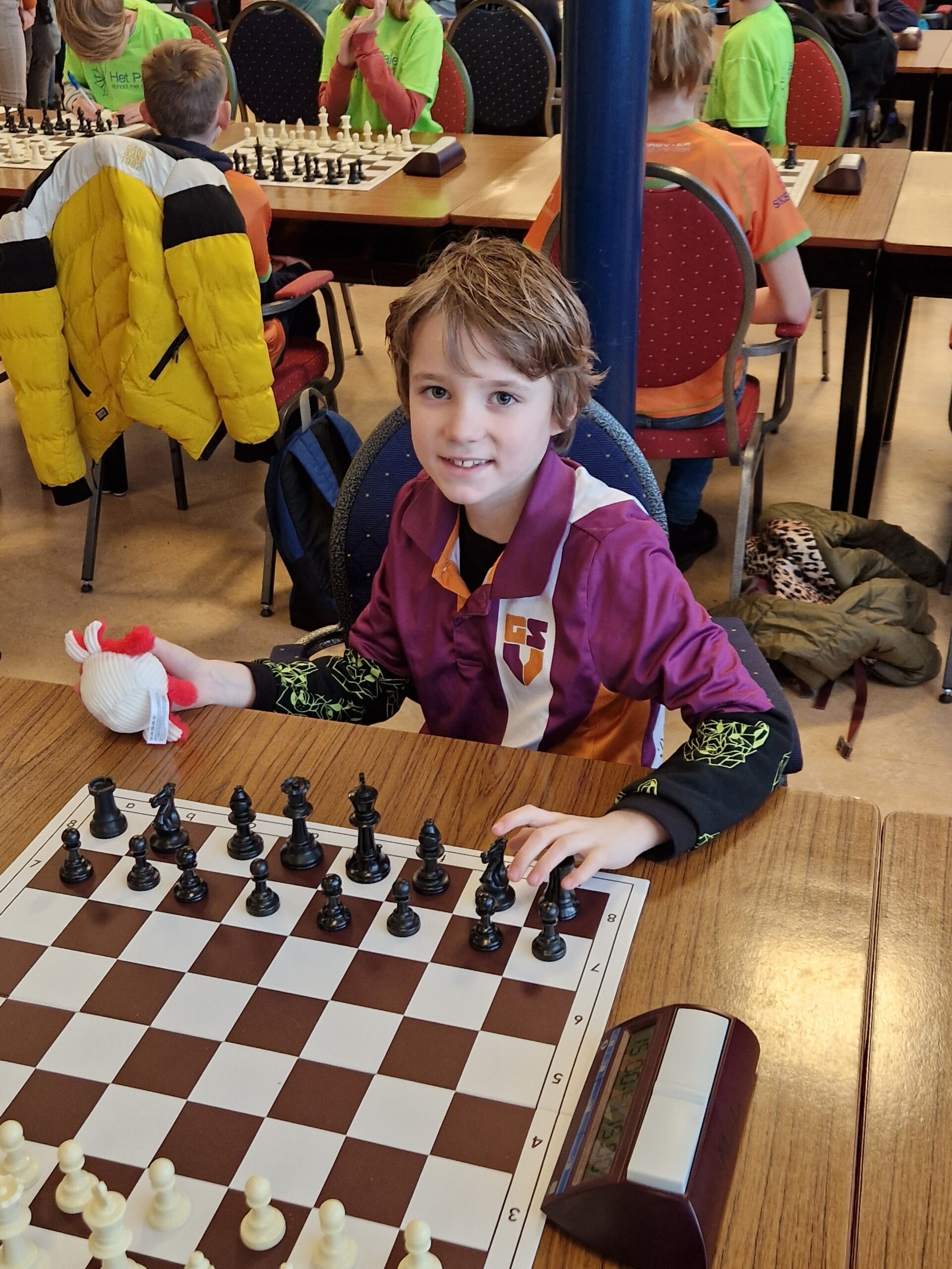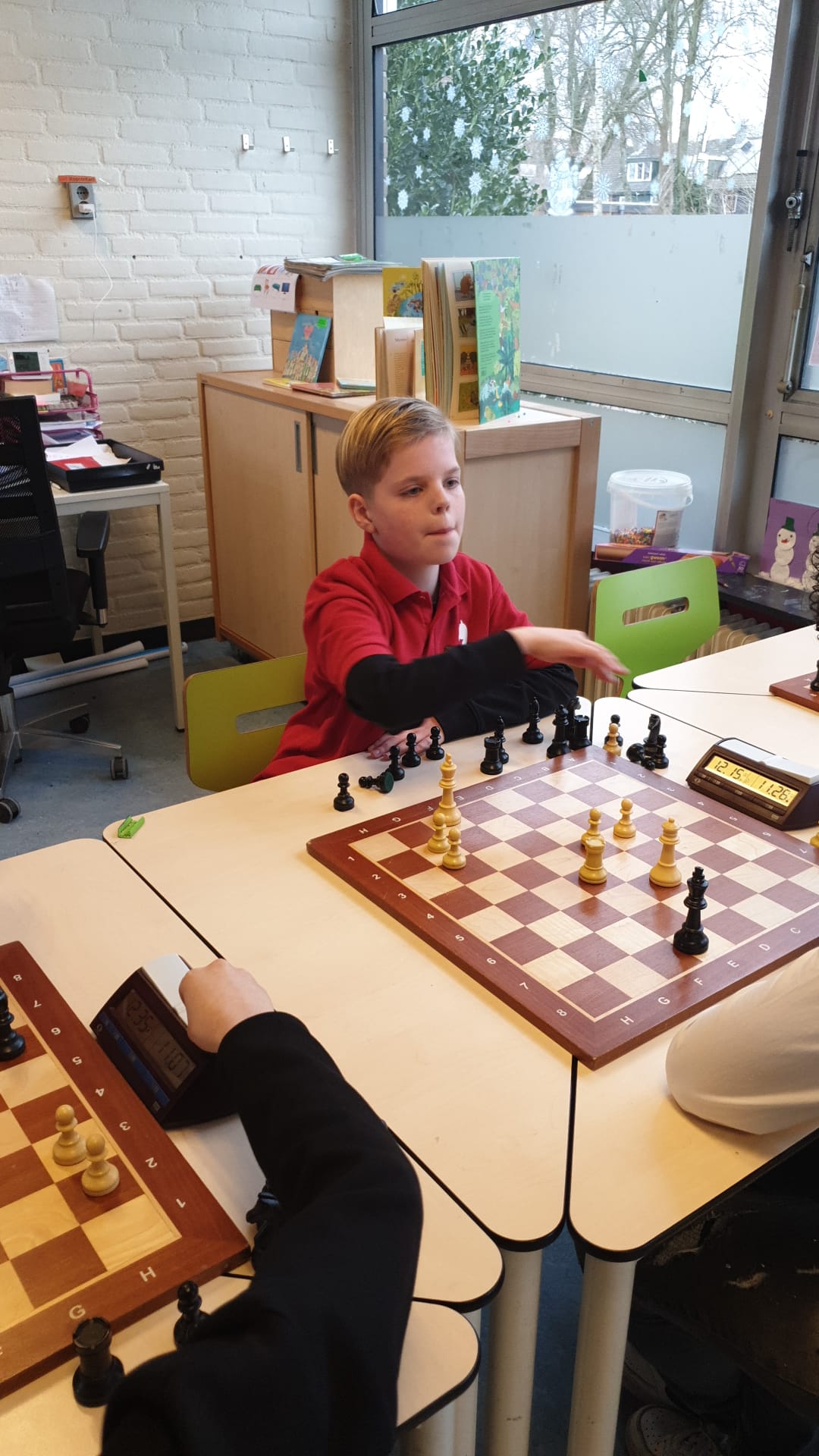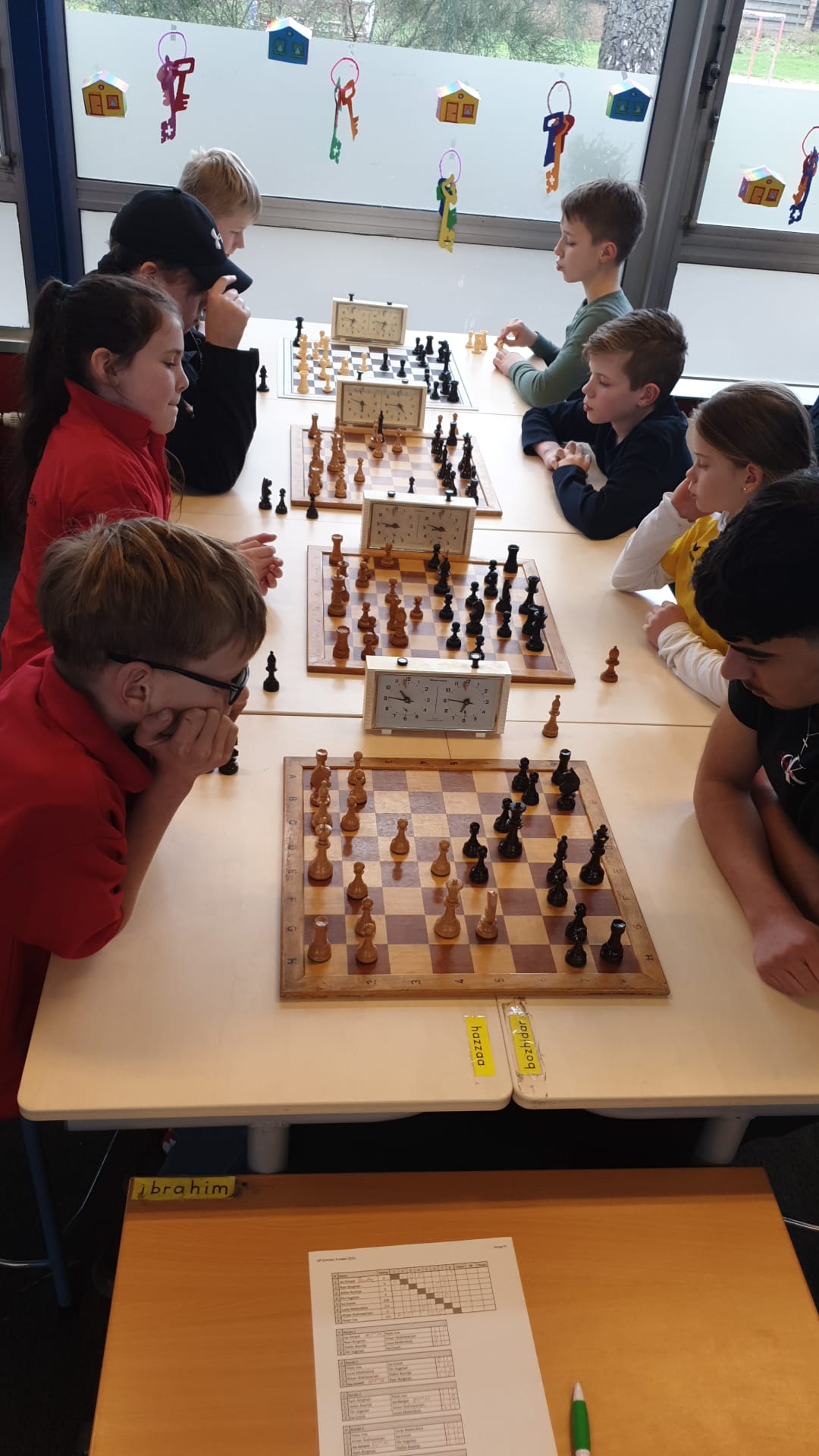 Noa scoorde 70% en wist enkele keren een verloren stelling in vliegende tijdnood alsnog te winnen. Ze is zoveel beter geworden en dat kwam nu naar voren. Joris en Thijmen haalden 7 uit 9.