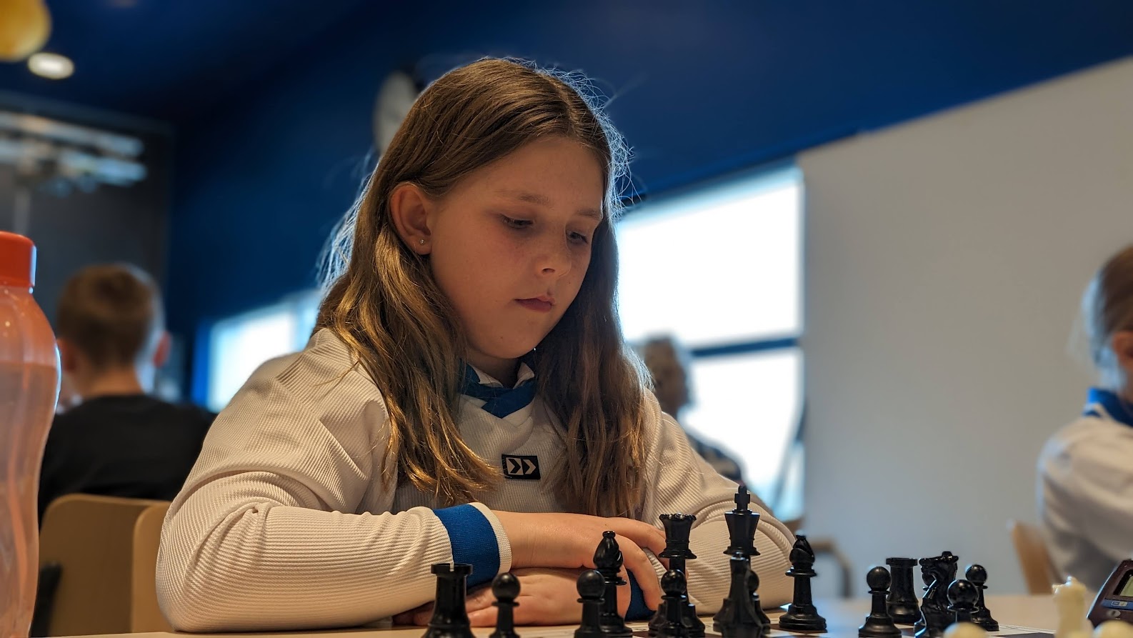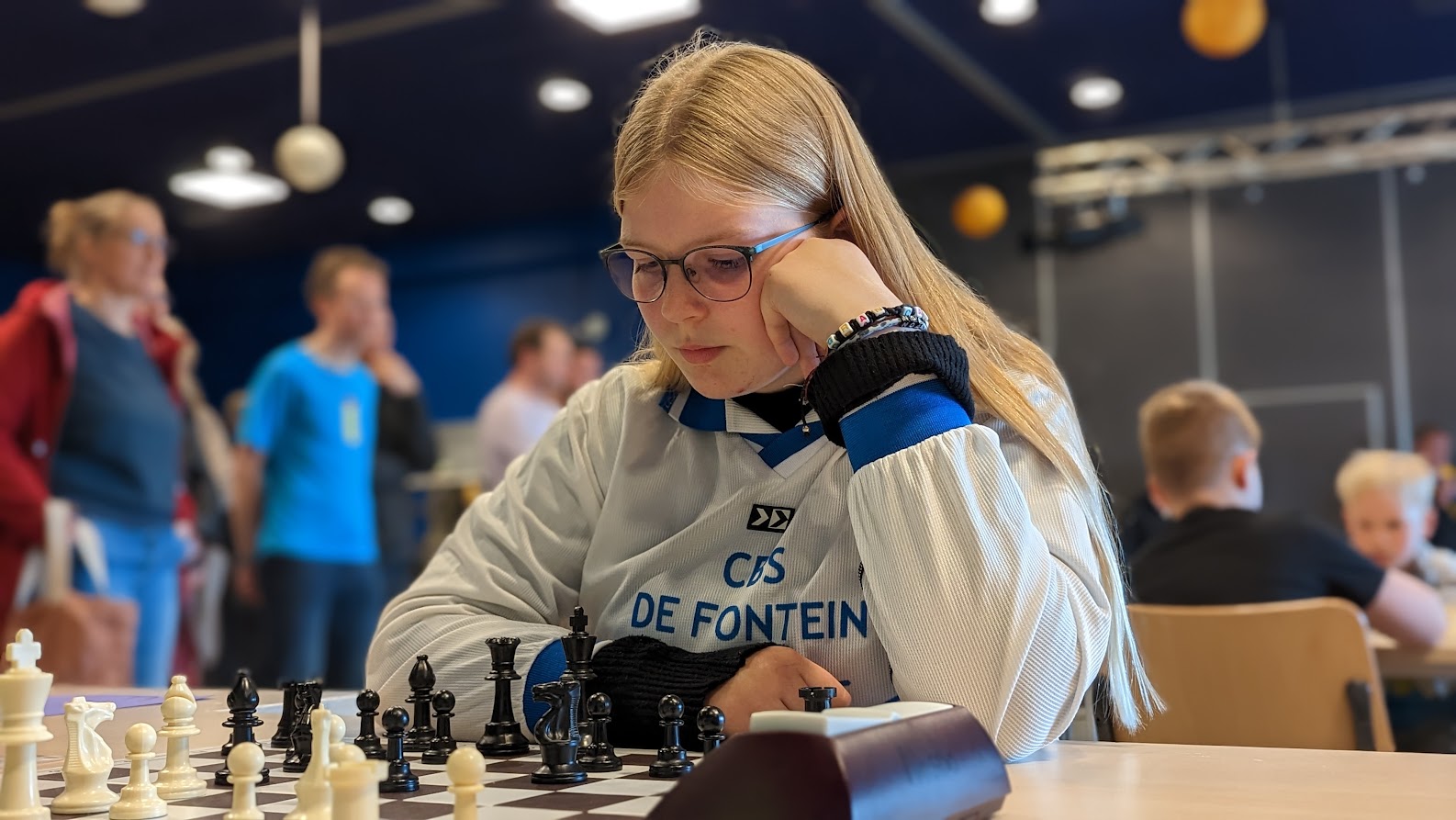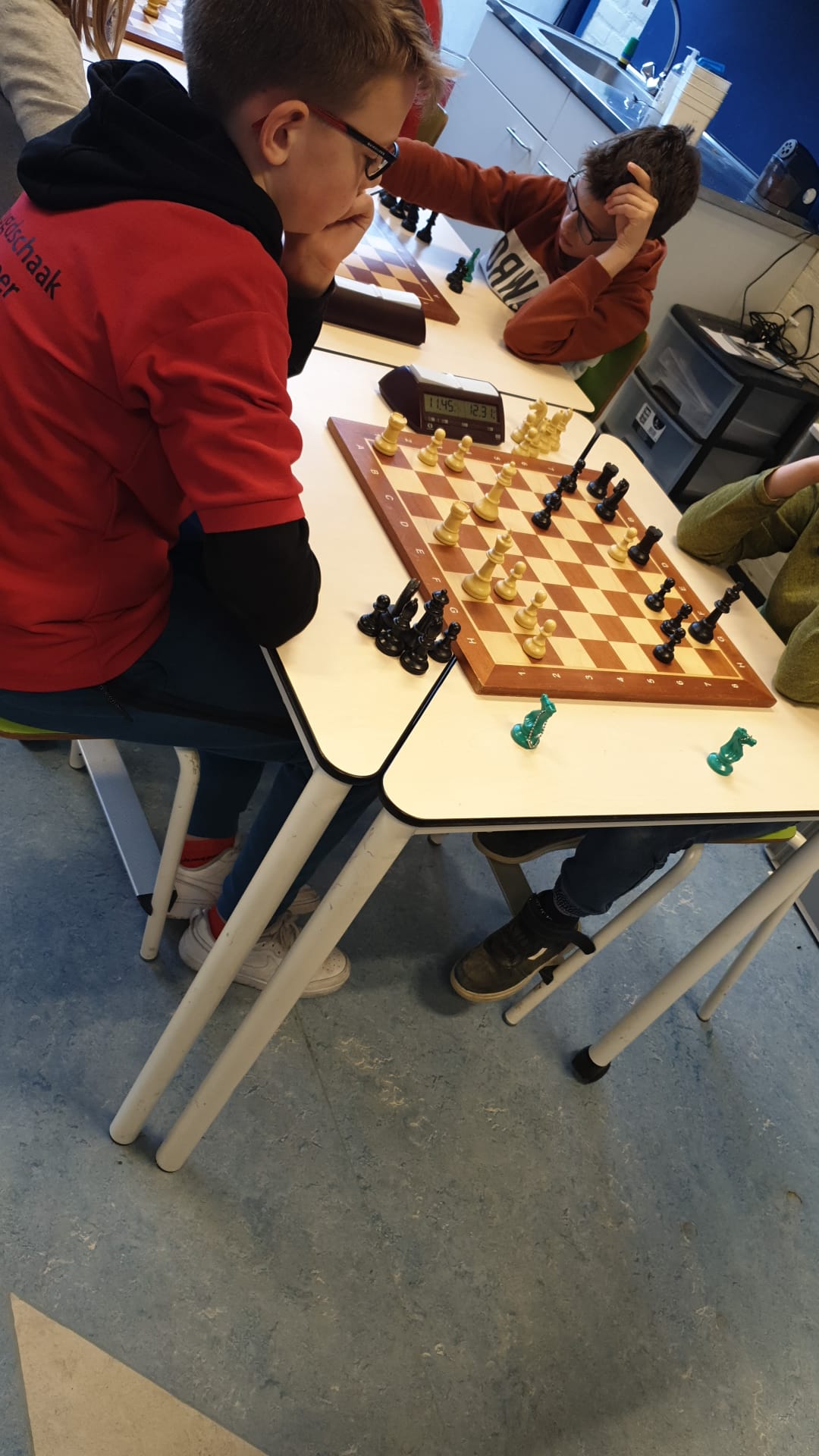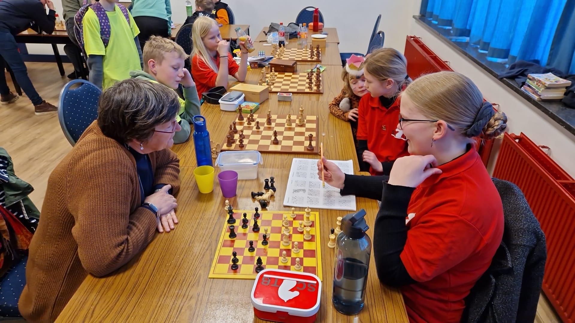 Noa scoorde 70% en wist enkele keren een verloren stelling in vliegende tijdnood alsnog te winnen. Ze is zoveel beter geworden en dat kwam nu naar voren. Joris en Thijmen haalden 7 uit 9.
