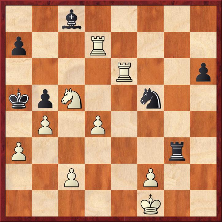 Wit heeft hier al groot voordeel. Waarschijnlijk is 32. Dxg5 hier het beste. Er dreigt 33. Th8#. Zwart kan zich nog verdedigen met 32… Ke8 (de loper op c5 kan terug naar f8), maar de aanval gaat door. Met een paar goede zetten wint wit, bijvoorbeeld 33. f6 (dreigt 34. Dg8+ Lf8 35. Dxf8+ Kxf8 36. Th8#) en zwart moet meer materiaal geven om het mat te voorkomen.