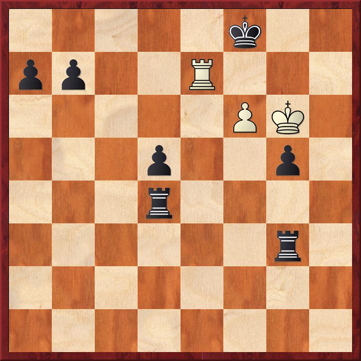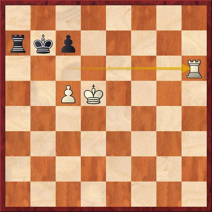 1. Ke6 d2 2. Th1 Kc2 3. e6 d1D+ 4. Txd1 Kxd1 5. e7 Th8 6. Kd7 h4 en de zwarte pion op de h-lijn beslist.