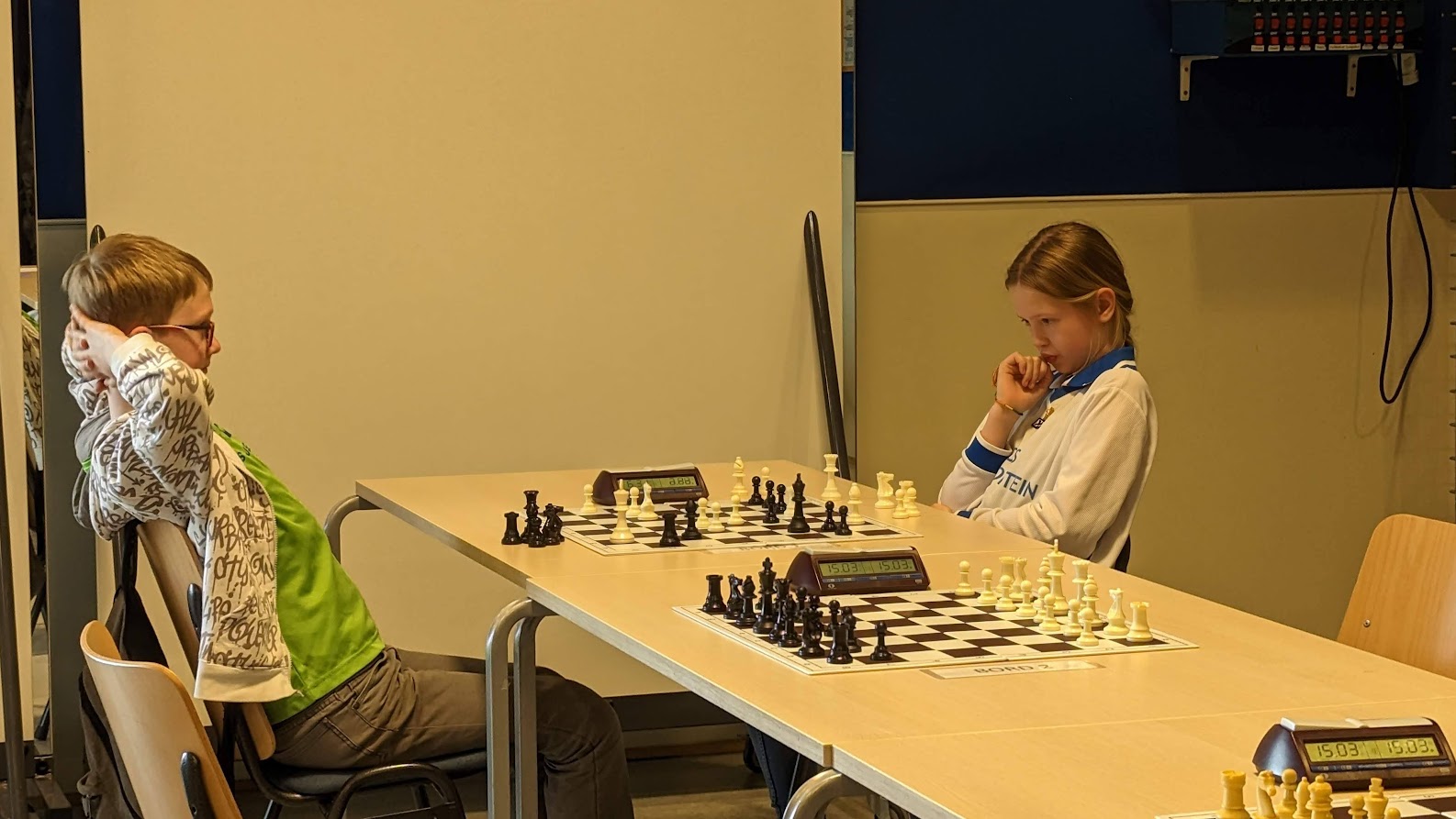 Bram wint van Besher waardoor het open NK G-categorie onbeslist blijft. Alle drie 1 uit 2.