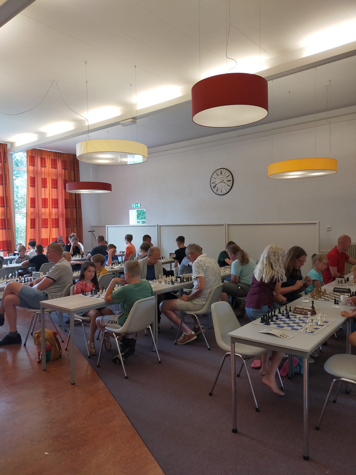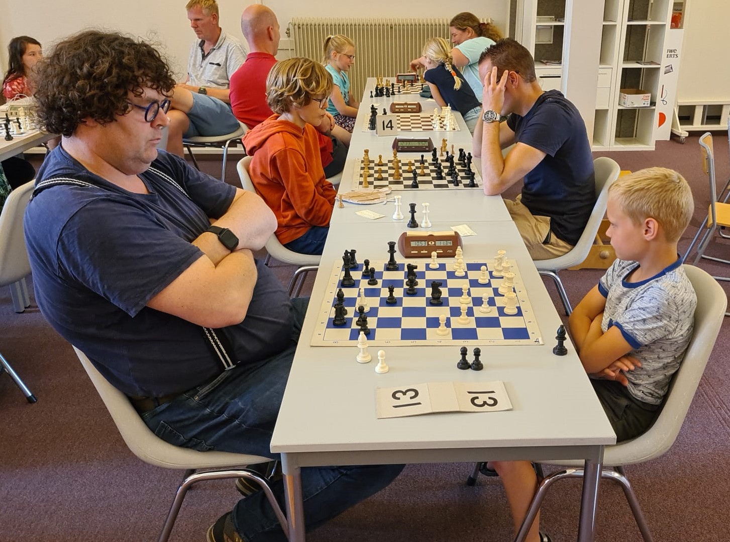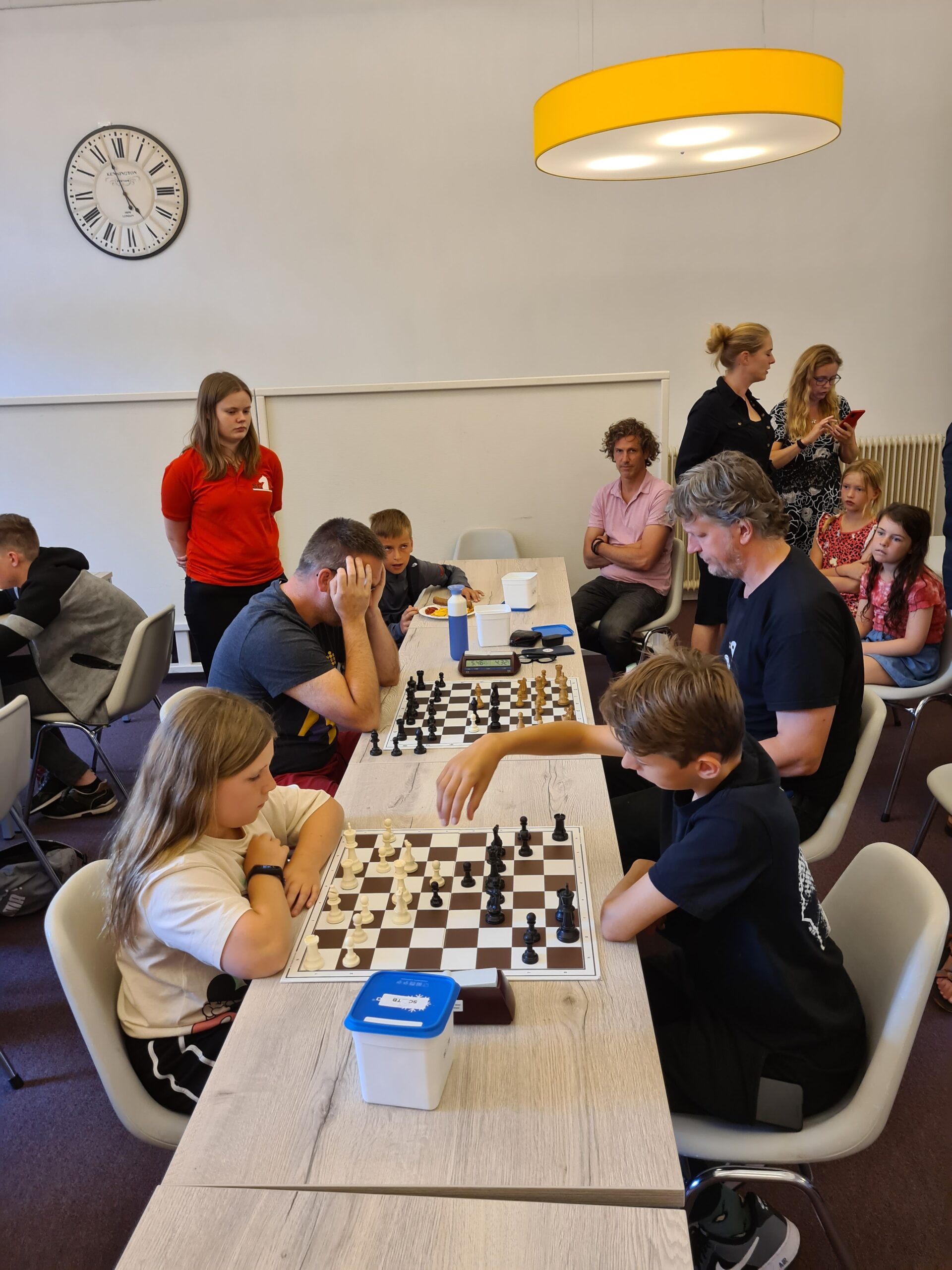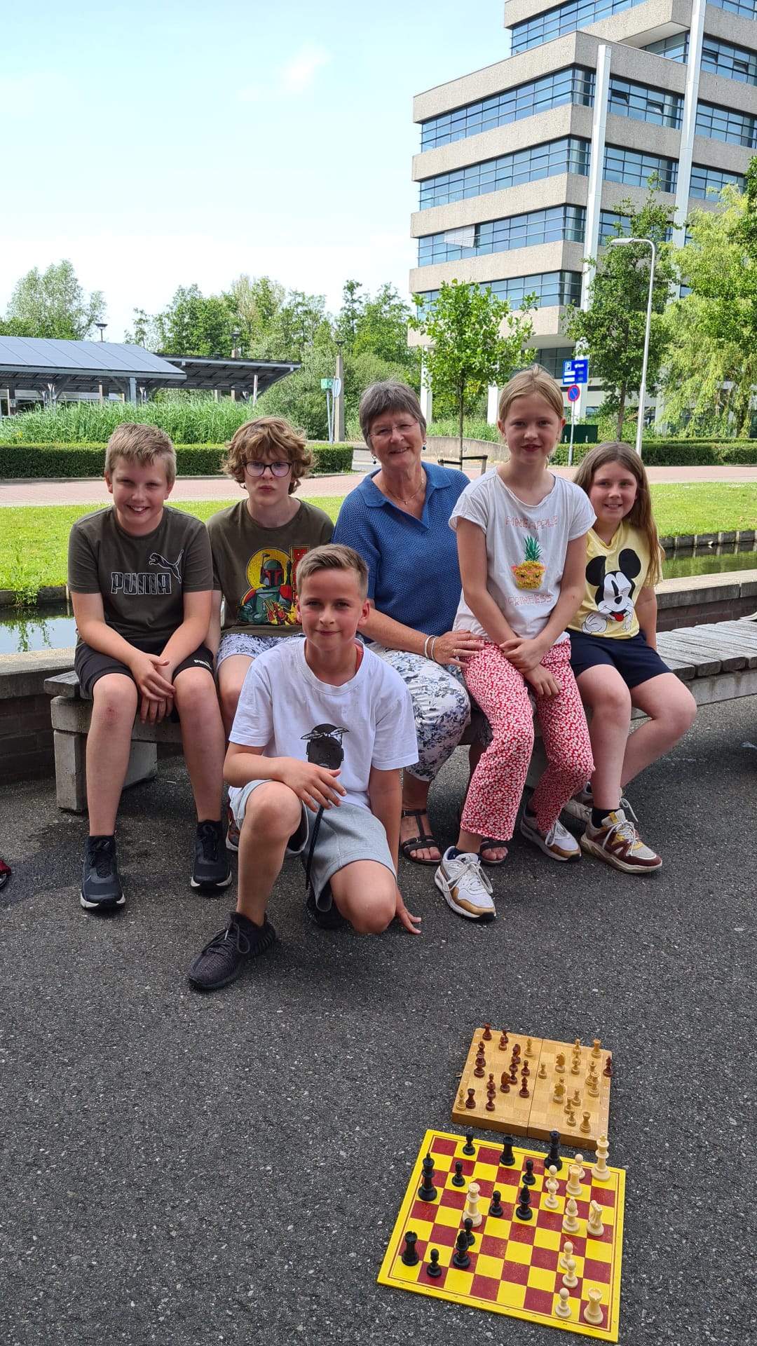 Doel van het toernooi is een leuke middag waarbij we als jeugdclub ook de volwassenen laten zien wat het betekent om te schaken. Dus het gaat niet om het winnen maar om het samenzijn met na afloop samen eten en de prijsuitreiking van het seizoen. We hadden dit op 18 juni gepland maar door het onverwachte succes van de Fontein met een NK-plek op deze zaterdag hebben we het naar 2 juli verplaatst. Met hulp van Femke (deed haar maatschappelijke stage ook meteen), Richard, Dirkjan, Helma, Freddie, Paula, Gerbrich, Roelof en het afgestofte draaiboek uit 2018 was het snel georganiseerd. Heel veel dank voor de organisatie!