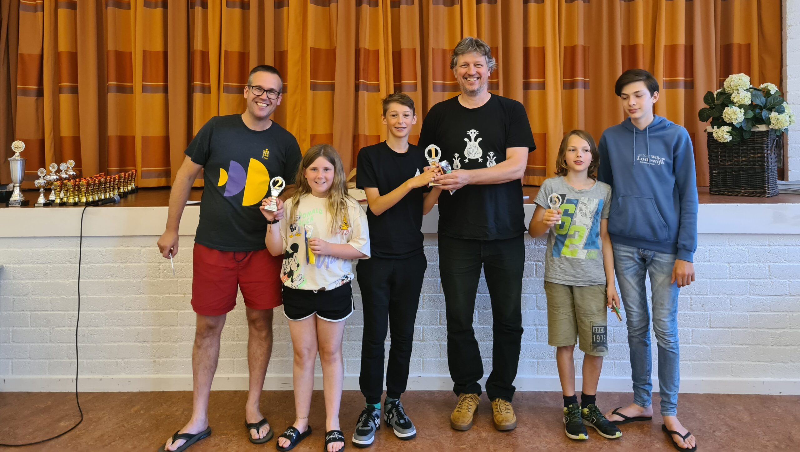 Voor de rest deed Thijmen het trouwens goed. Hij begon met 2 uit 2, verloor vervolgens twee keer, won weer twee keer en stond voor de laatste ronde op plek 7. Bij deze jongste groep is vermoeidheid ook een belangrijke factor en Thijmen verloor hierdoor zijn laatste ronde. Met 4 uit 7 werd hij maar liefst negende, een uitstekende prestatie.